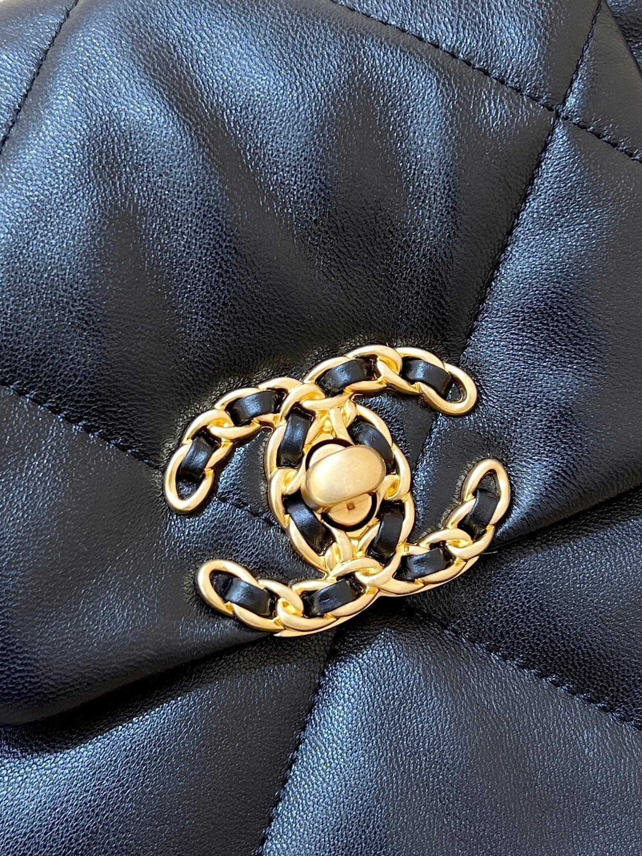 CC 19 HOBO BAG 29CM BLACK GOATSKIN GOLD HARDWARE