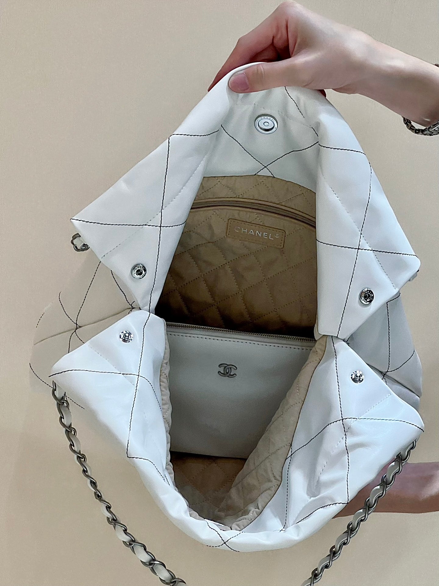 CC 22 Hobo White Black Calfskin Silver Hardware