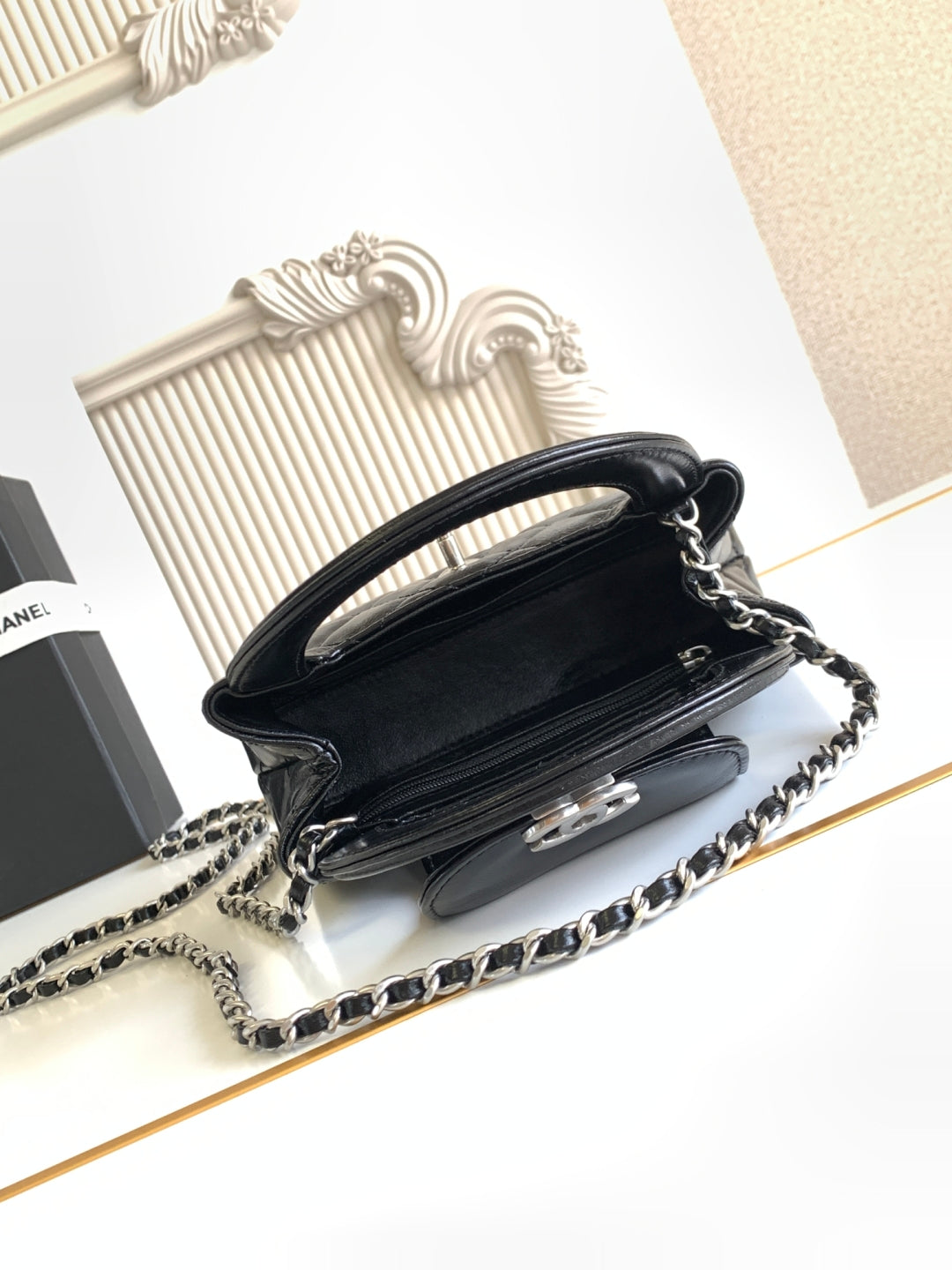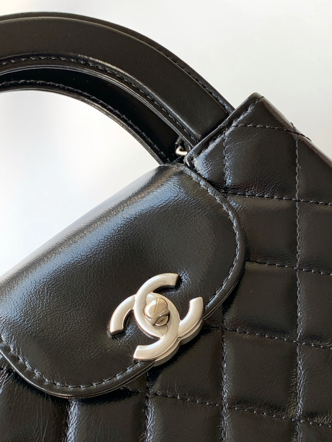 cc 24a nano 19cm kelly shopper bag black lambskin sliver hardware