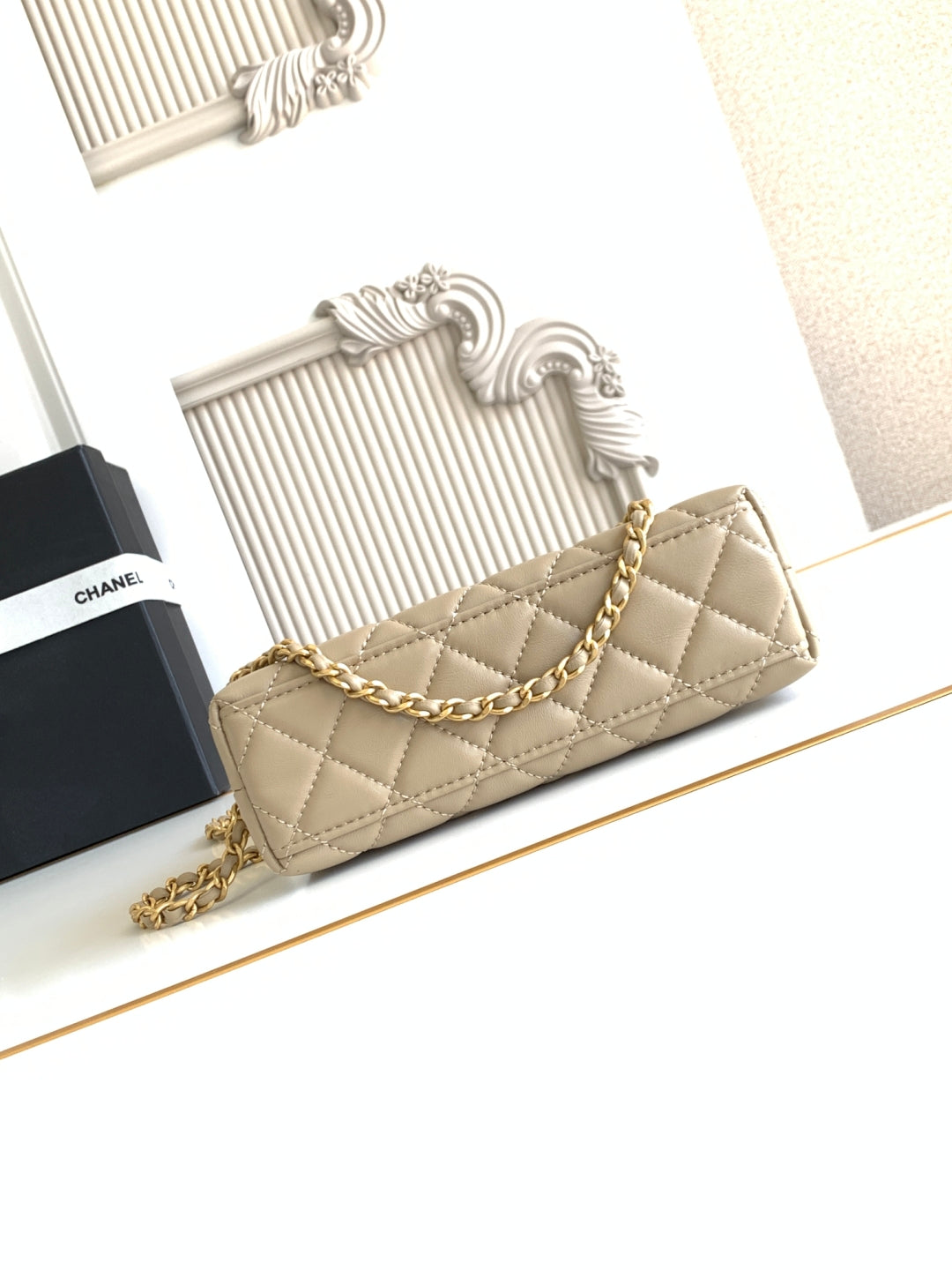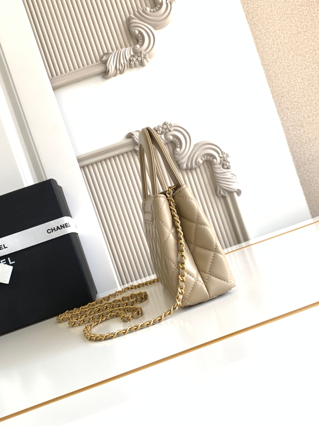 cc 24a nano 19cm kelly shopper bag light beige lambskin