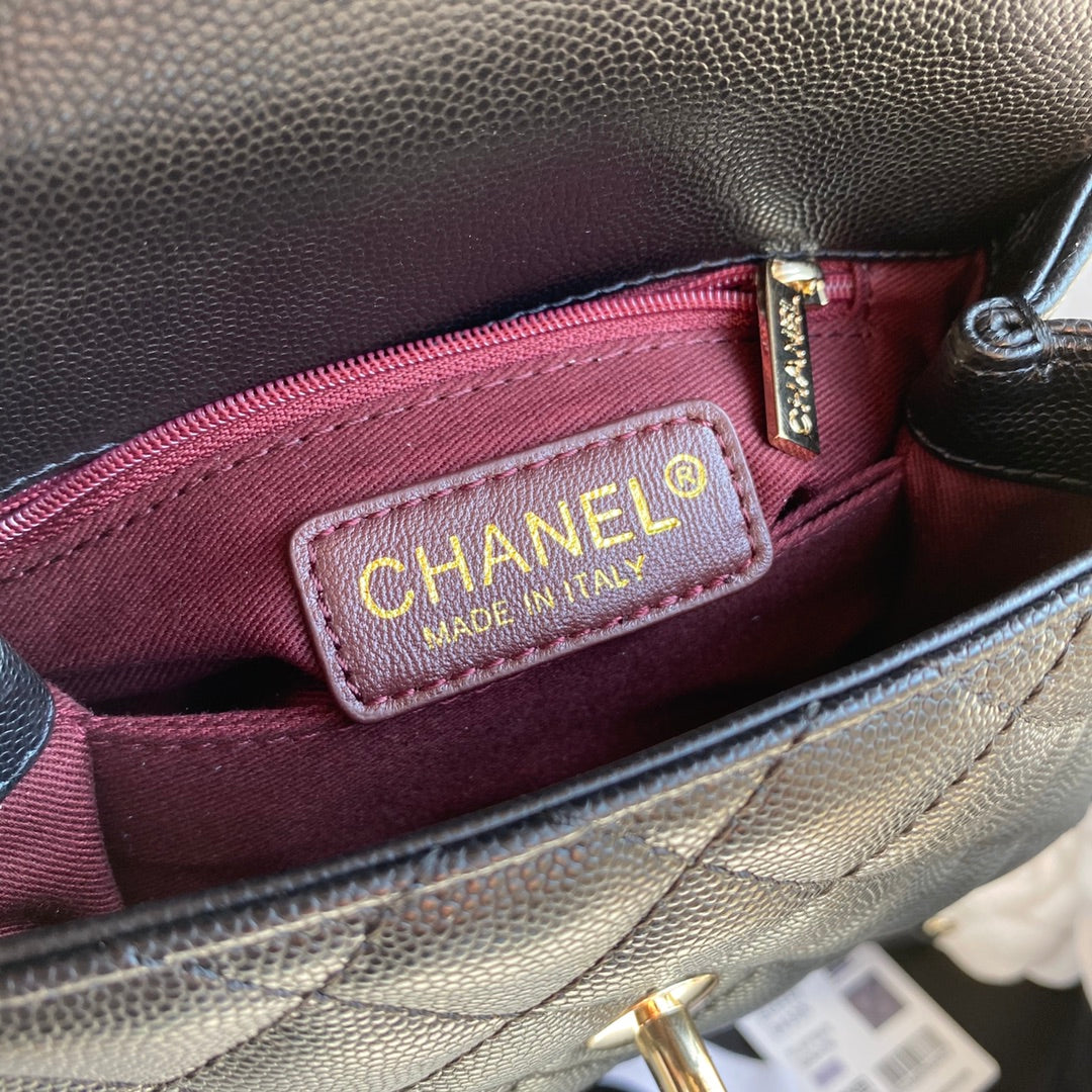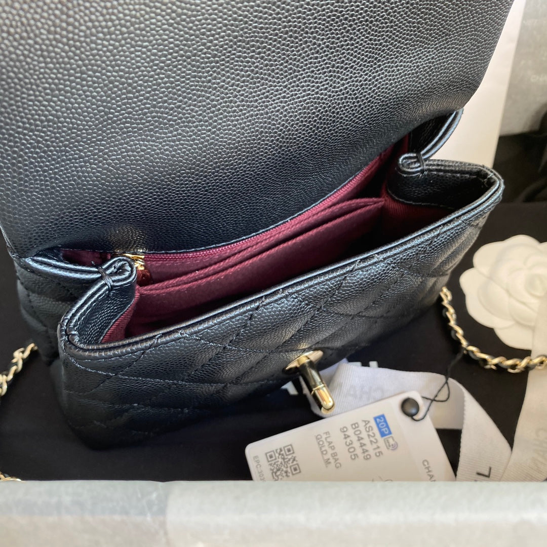 CC 24K Coco Hanle Mini 19cm Black Grained Calfskin Gold Hardware