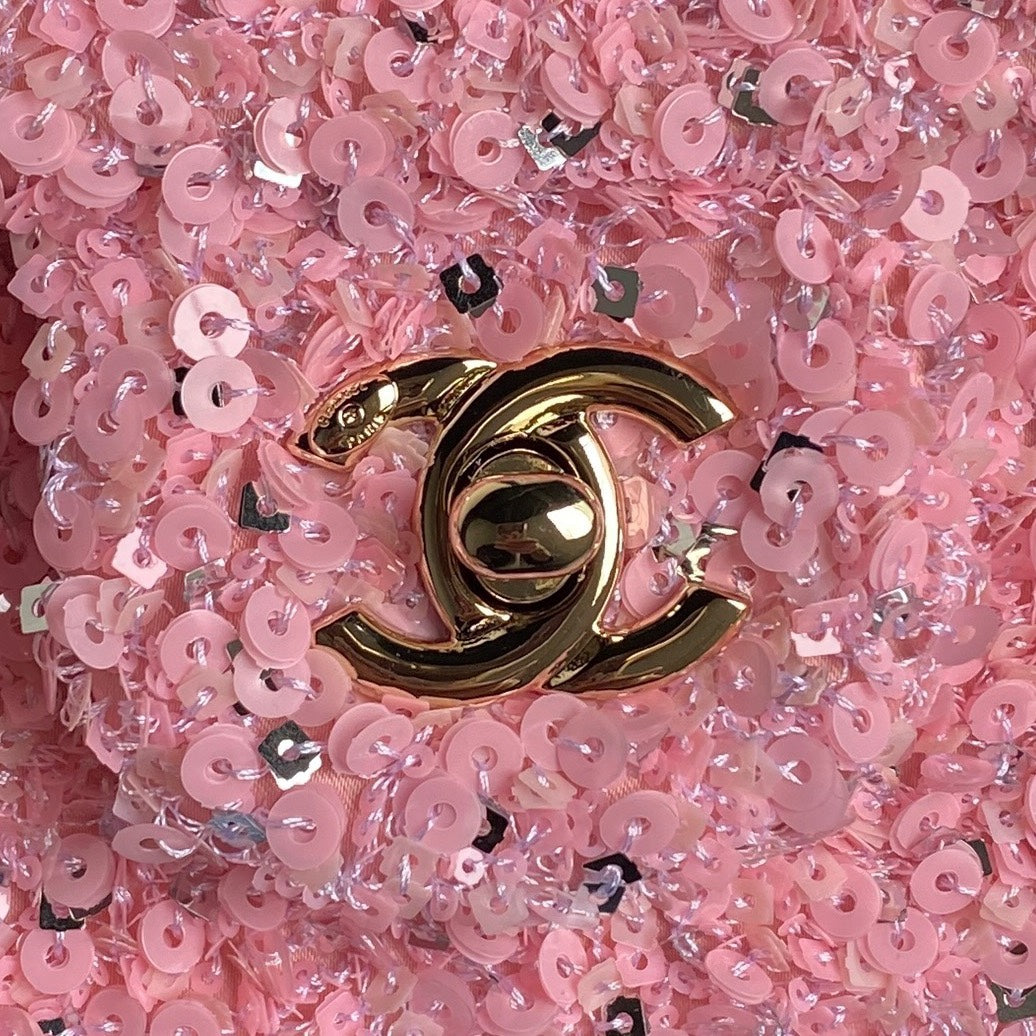 CC 24K Flap Bag 20cm Pink Sequin