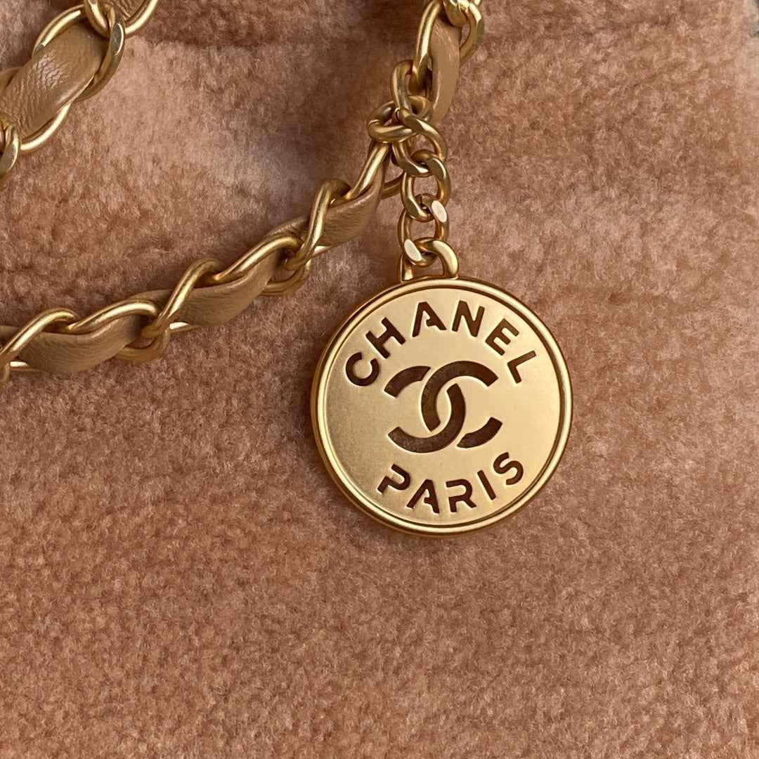 CC 24K Hobo 22 Bag 39cm Brown Wool Fur