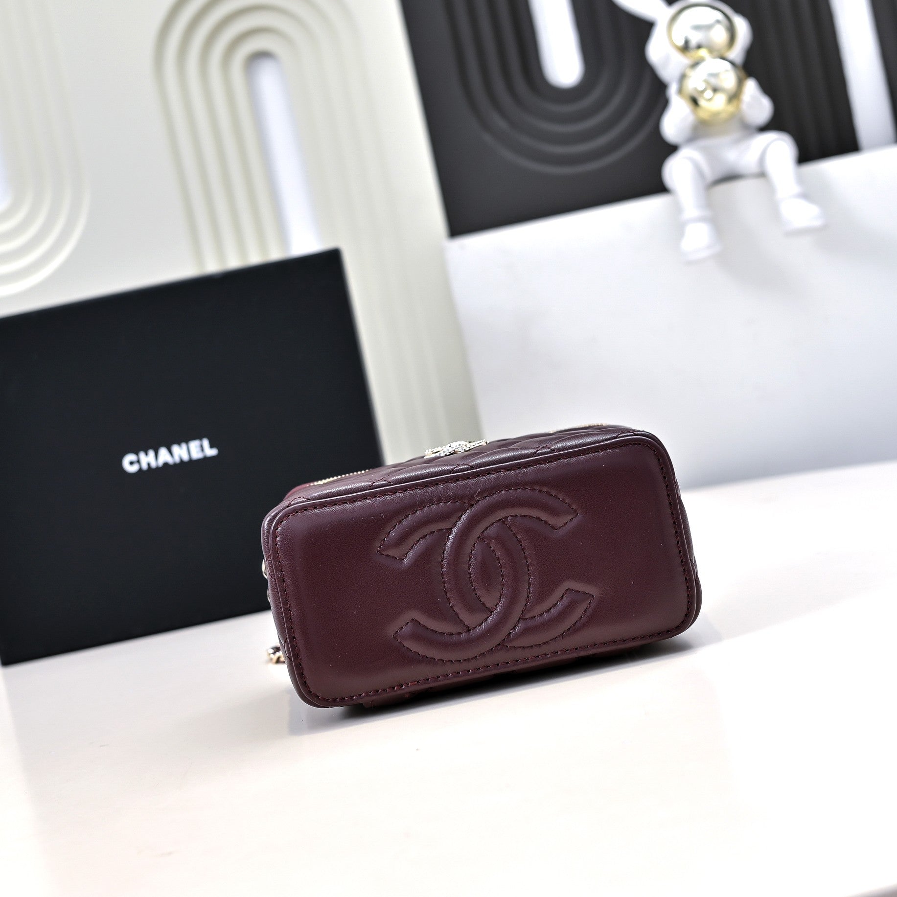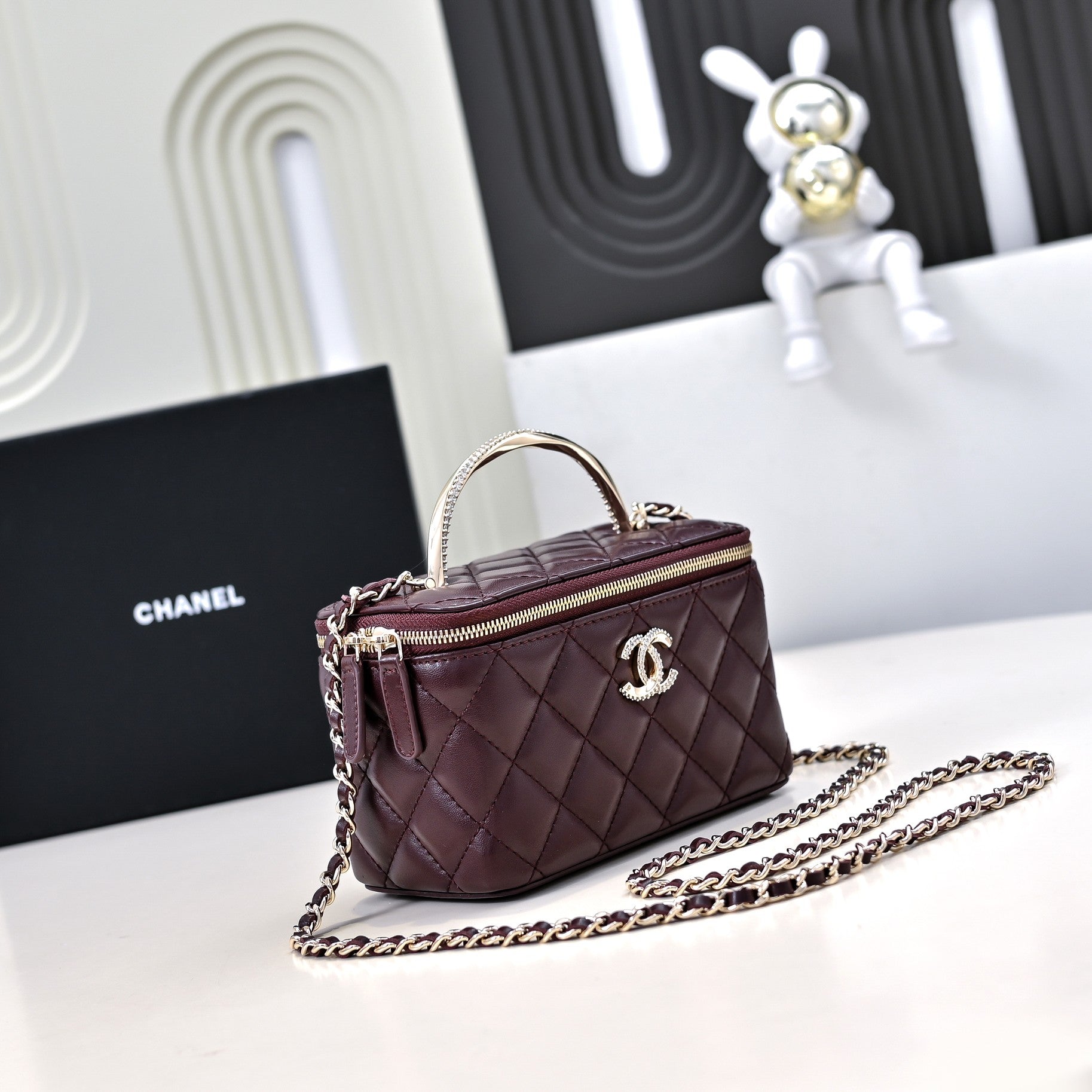 CC 24K Vanity Top Handle 17cm Burgundy Lambskin Silver Hardware