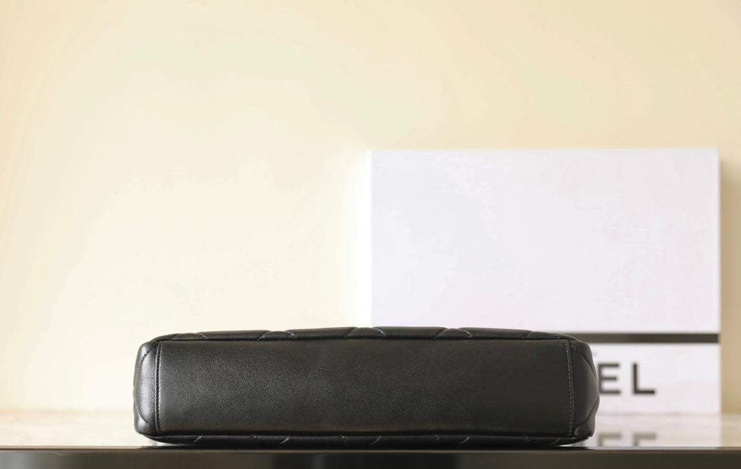 cc 24p hobo bag 28cm black lambskin gold hardware