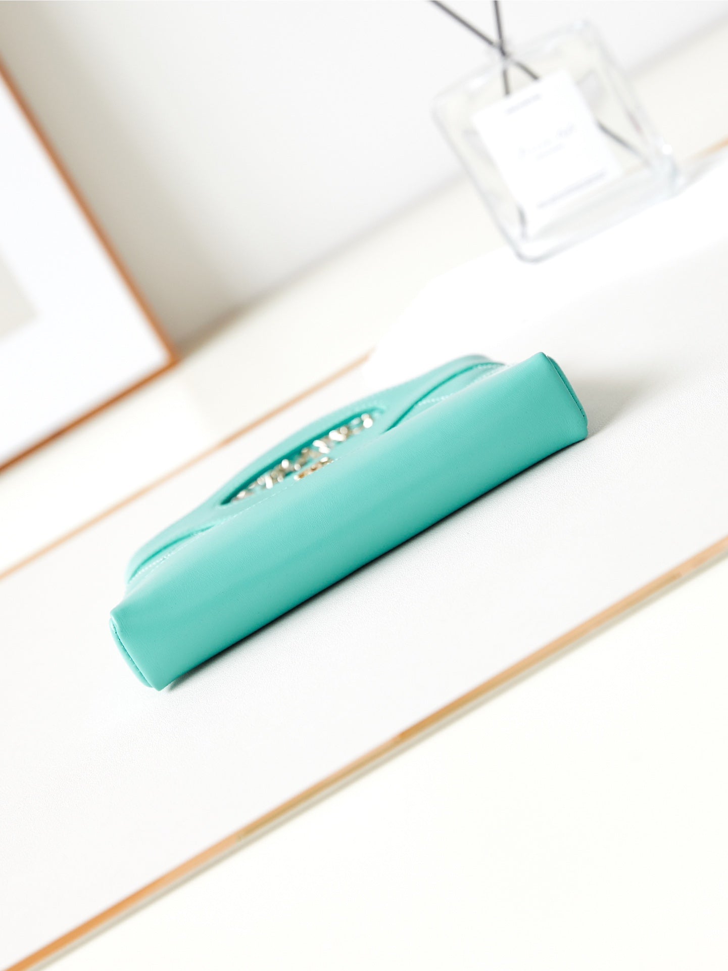 - Color: Cloud Blue, Gold hardware