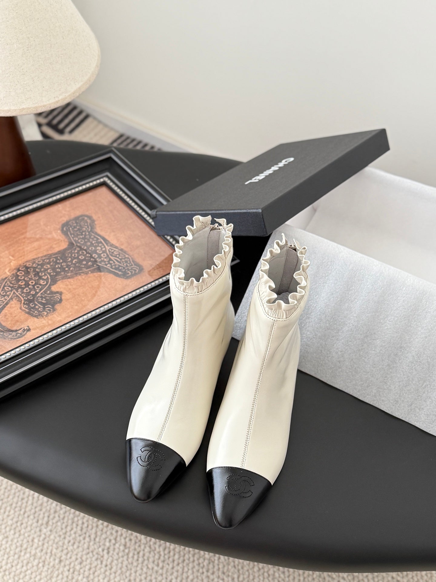 CC 25 Mary Jane boots white black sheepskin 458771