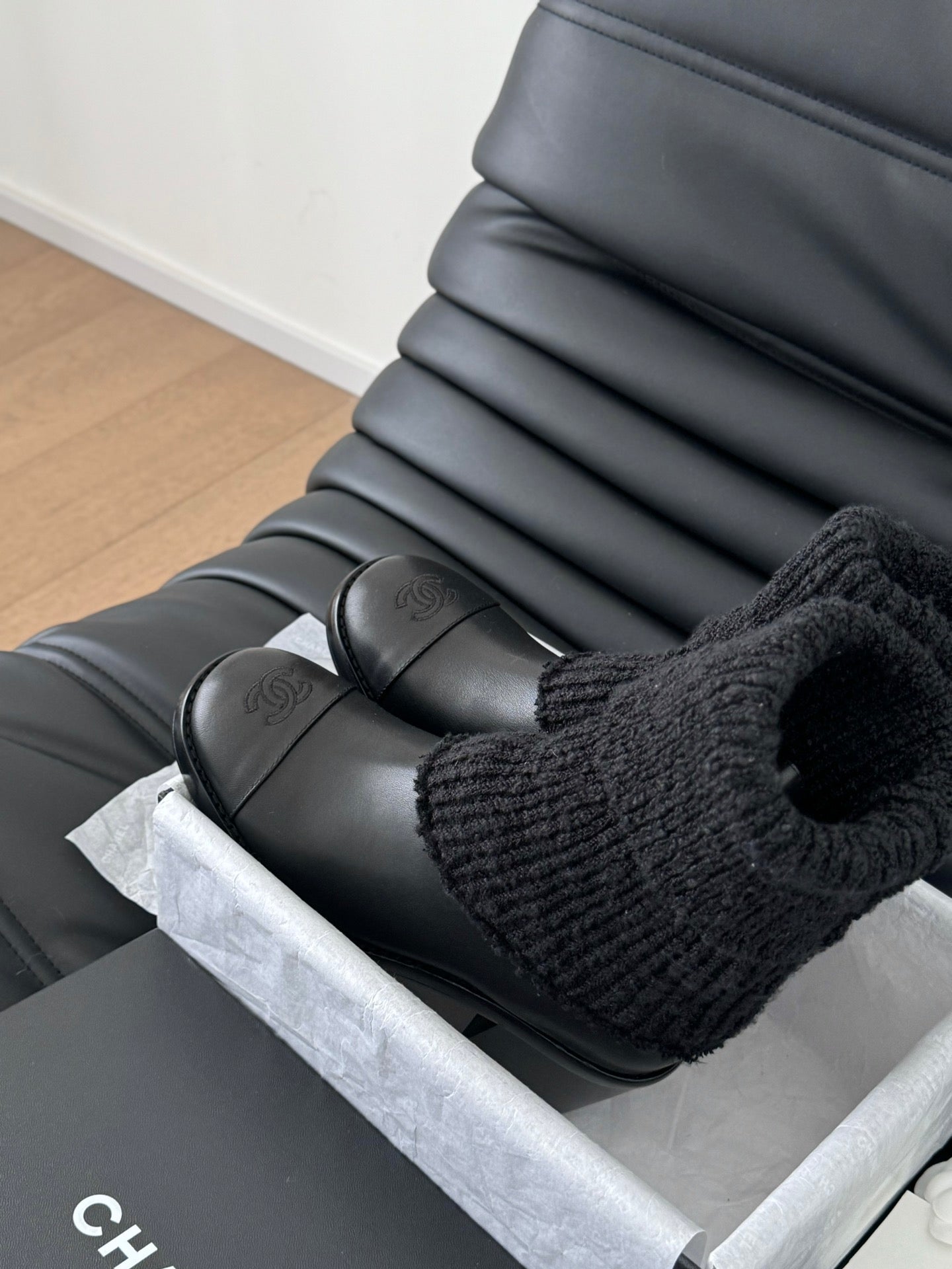 CC 25 new sock boots black knit wool sheepskin 458774