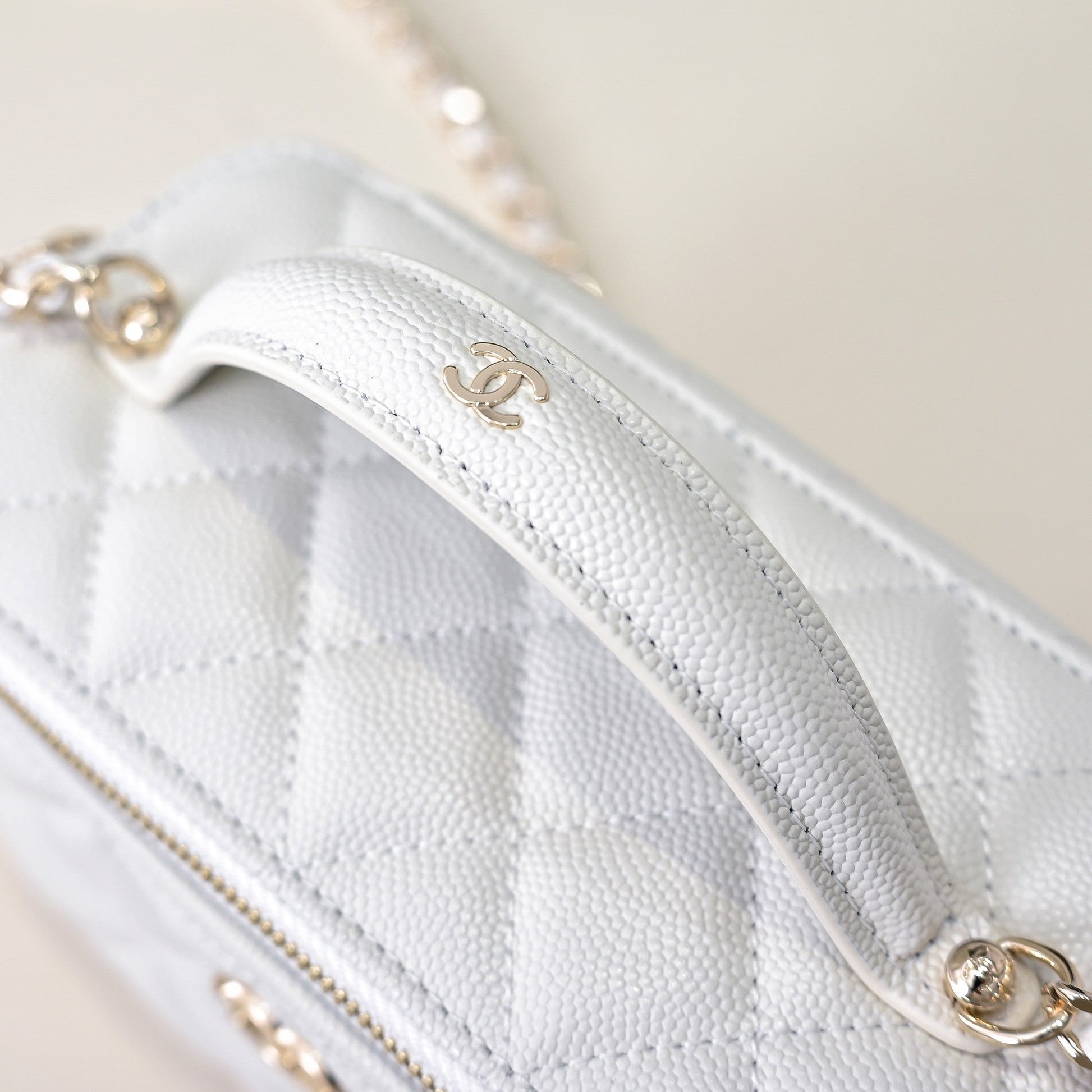 CC 25C Vanity Top Handle 17cm White Grained Calfskin Light Gold Hardware