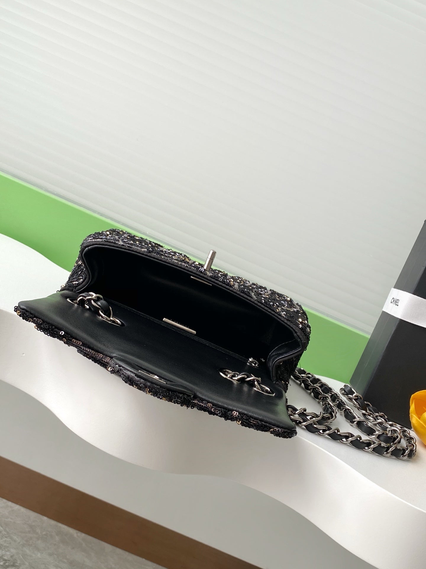 cc 25S Flap Bag 21cm Black Silver Sequin Calfskin