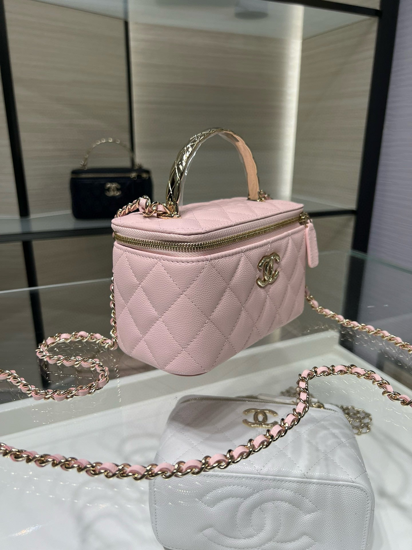 CC 25S Small Vanity 17cm Pink Grained Calfskin Light Gold Hardware