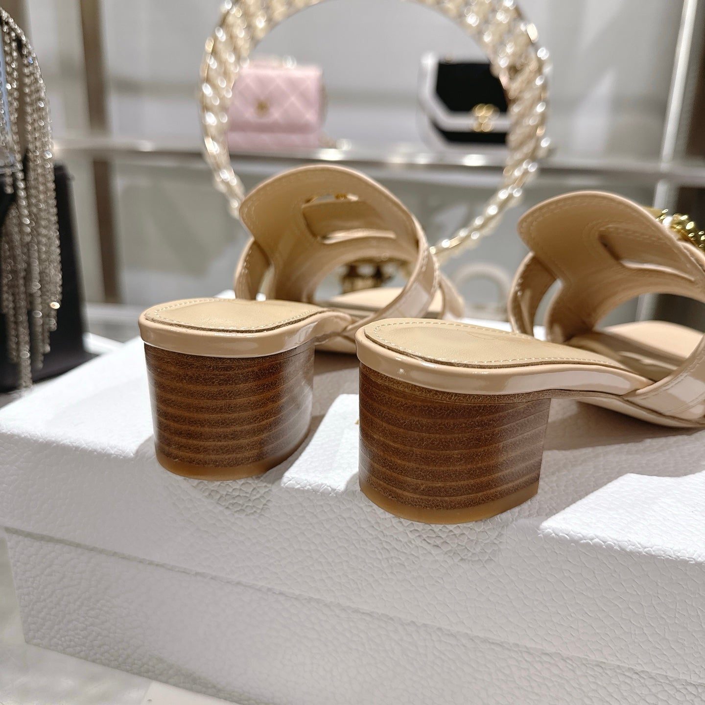 CD 26 Chunky Heel Sandals 35mm Beige Patent Leather 592269
