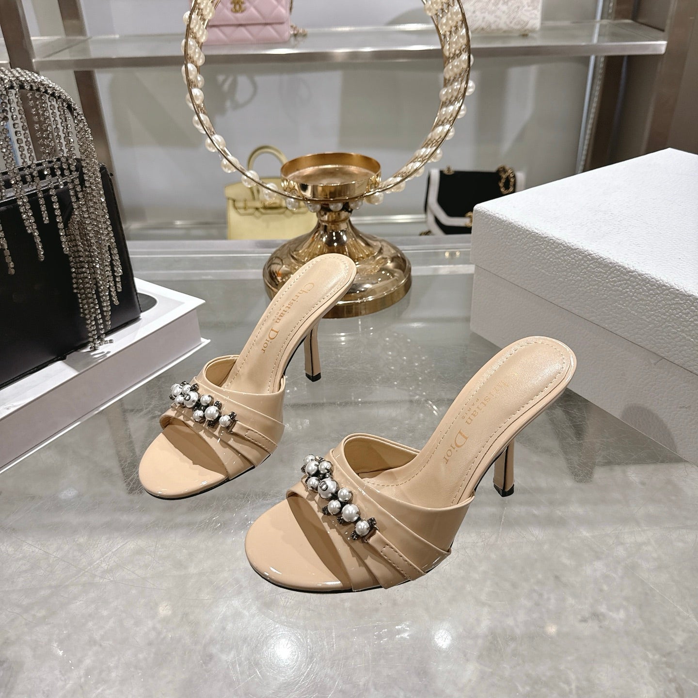 CC 26 High-Heeled Mules 85mm Pearl Beige Patent Leather 592250