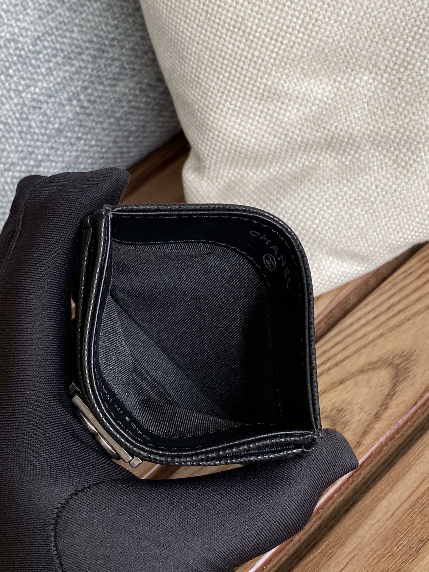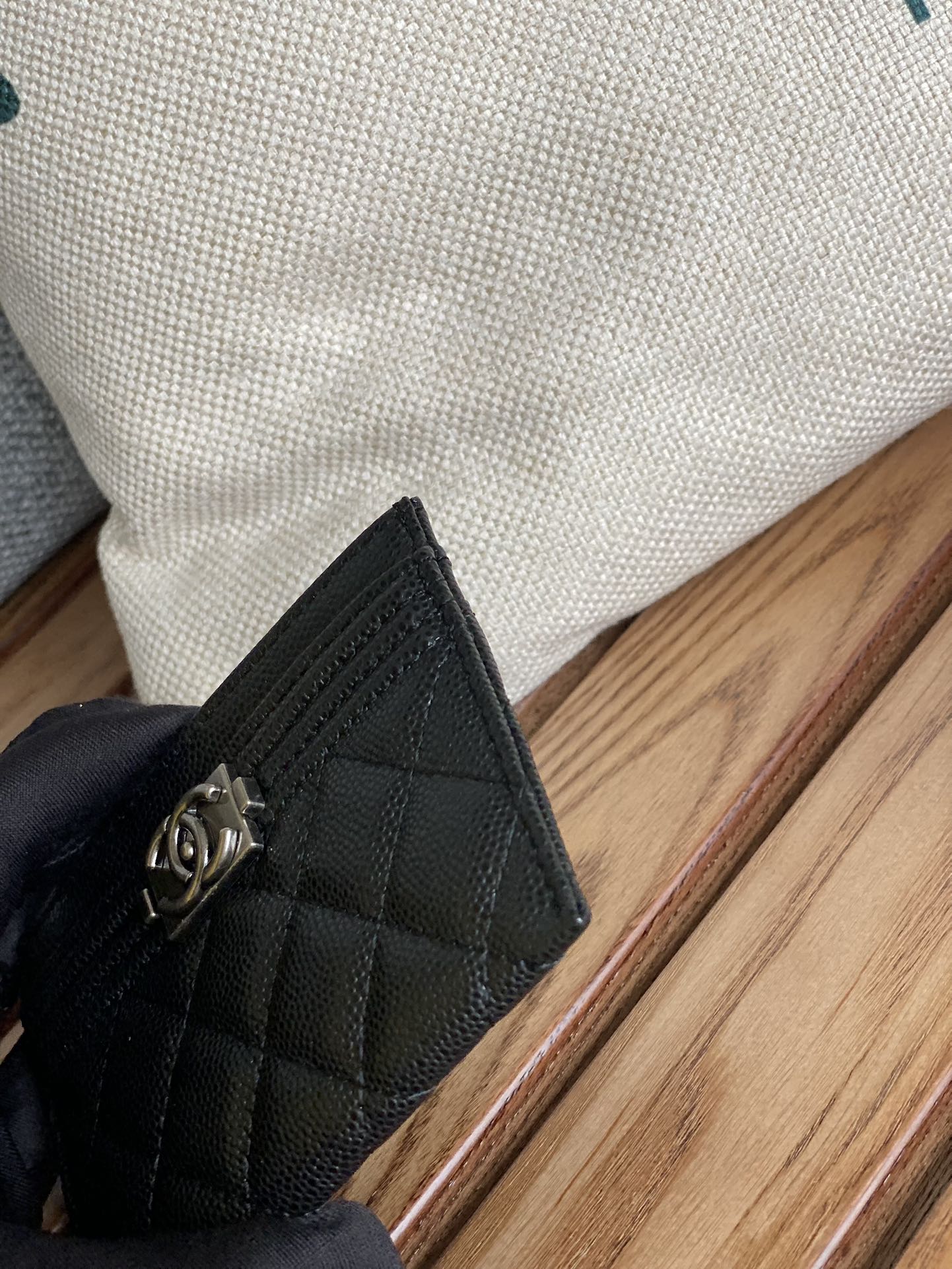 cc boy 11cm card holder black caviar silver hardware