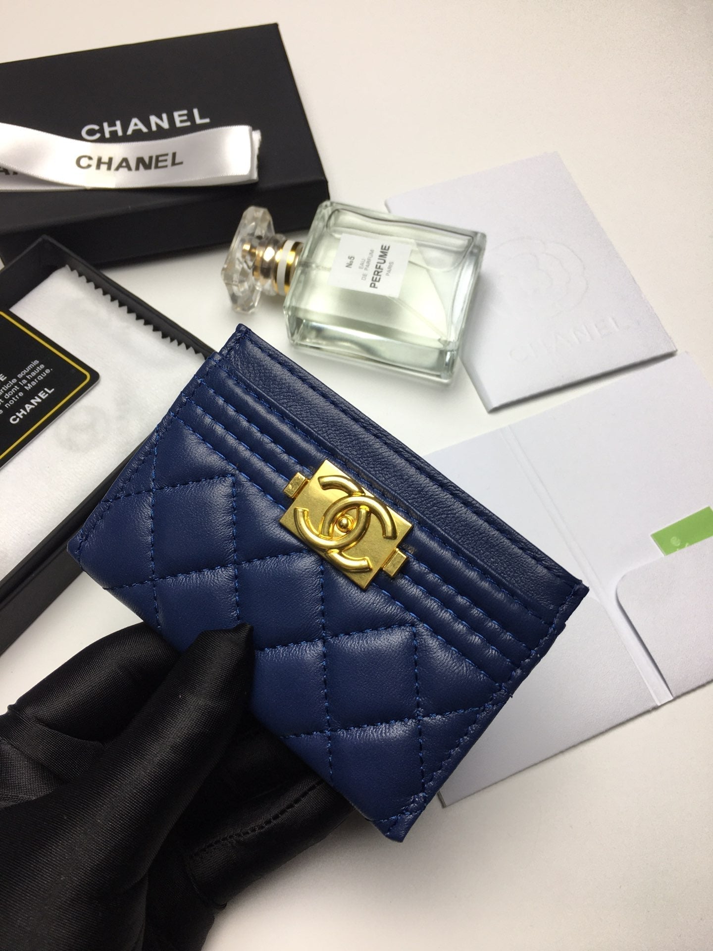 CC BOY CARD HOLDER 11.2 NAVY CALFSKIN GOLD ICON