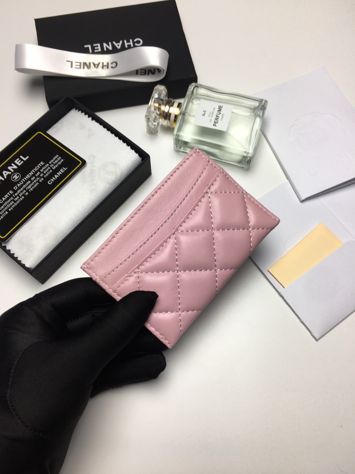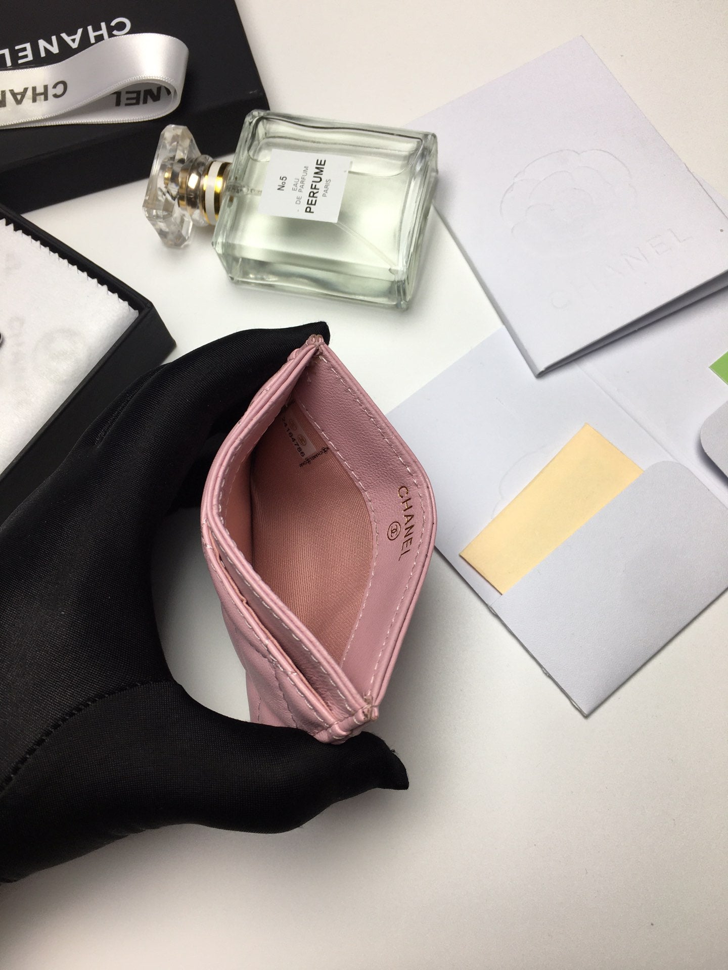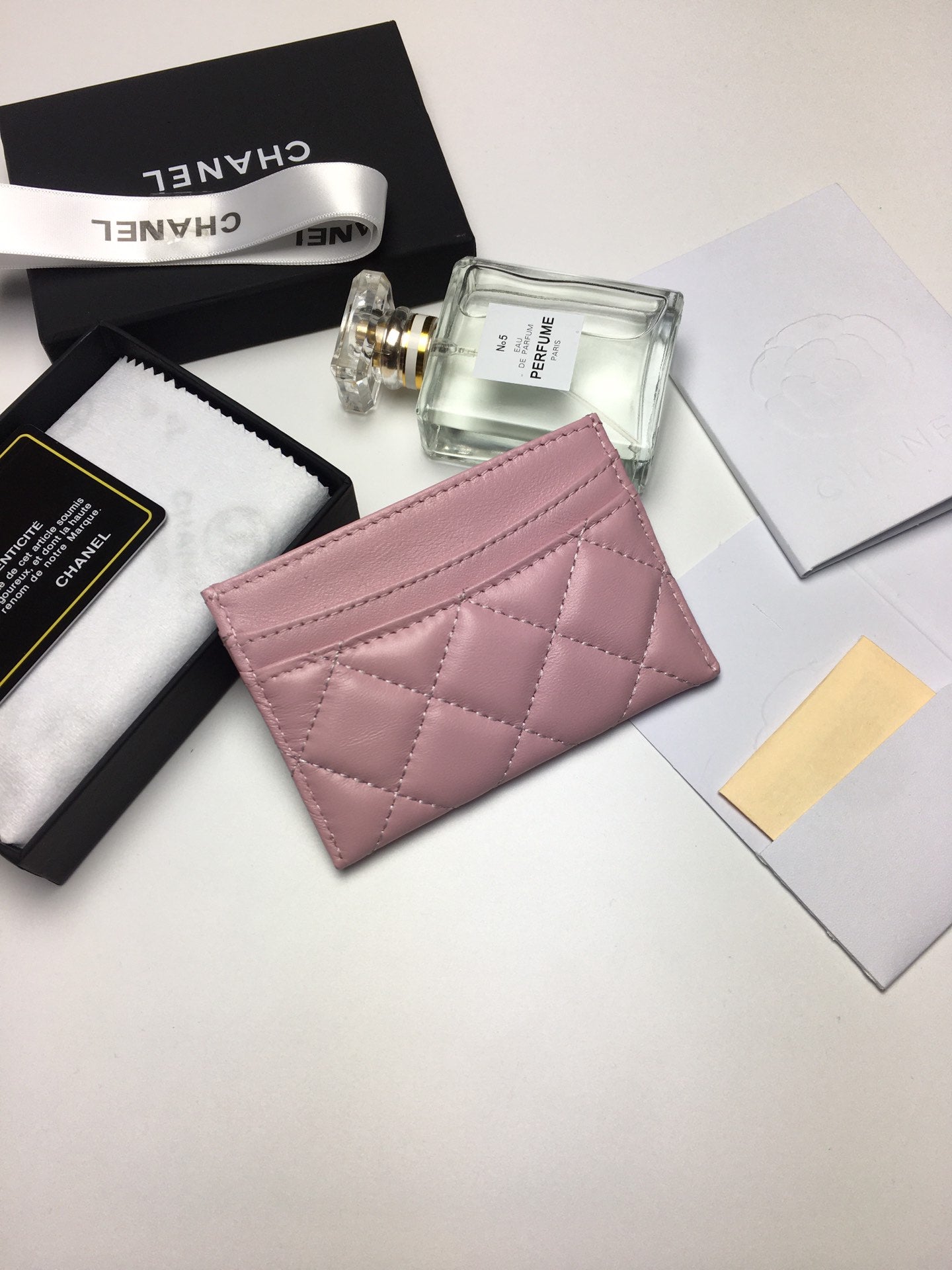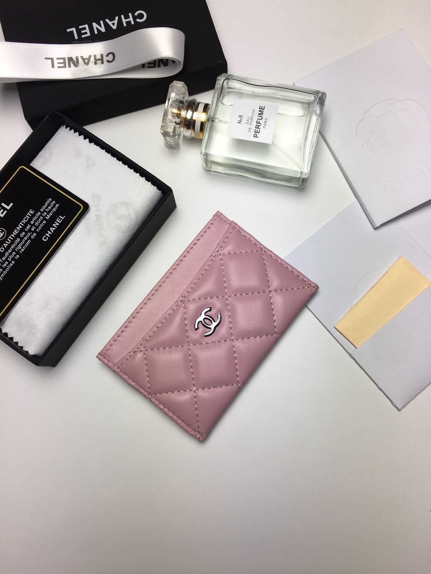 CC CARD HOLDER 11.2 BABY PINK CALFSKIN SILVER ICON