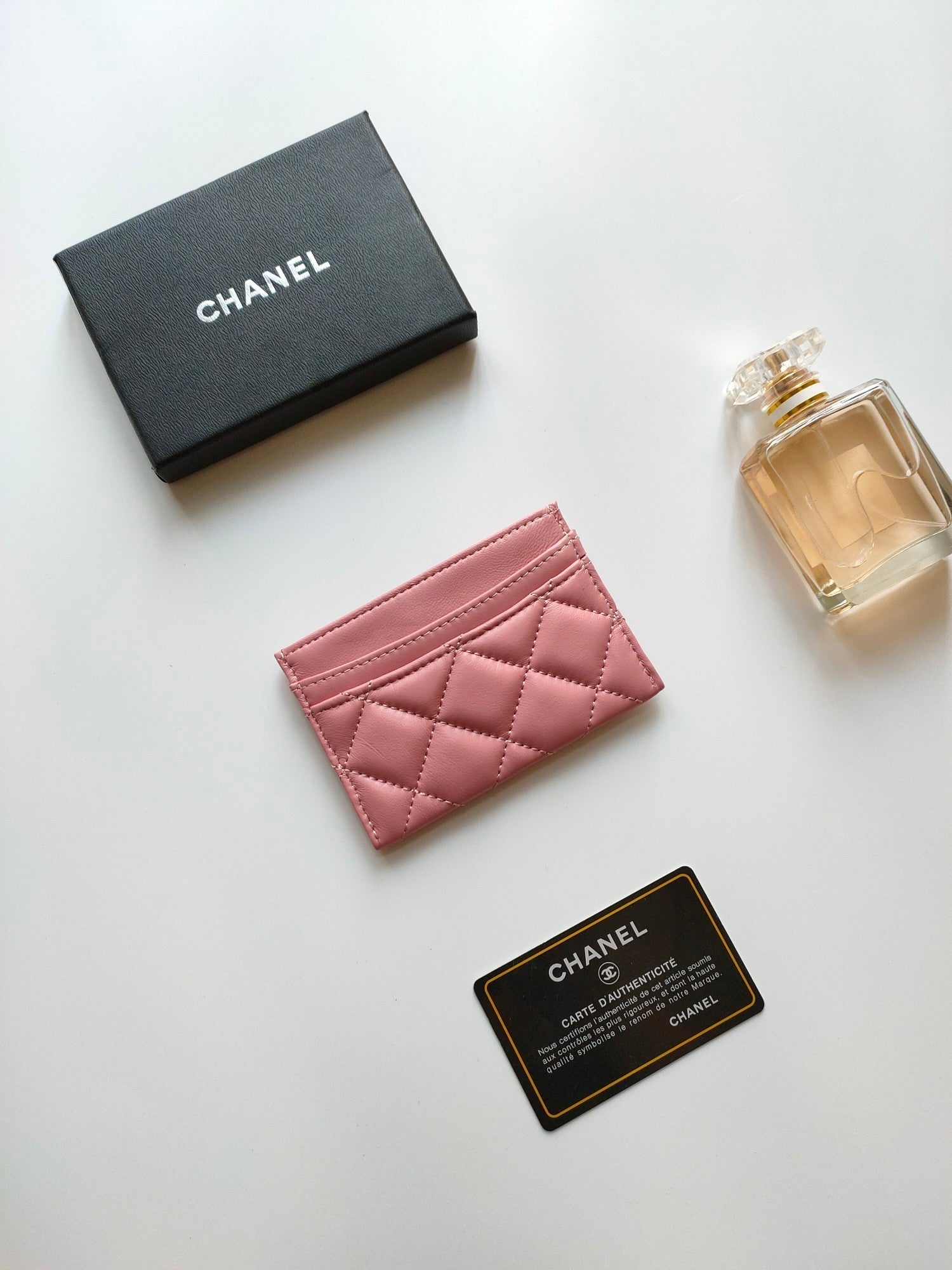 CC CARD HOLDER 11.2 LIGHT PINK CALFSKIN GOLD ICON
