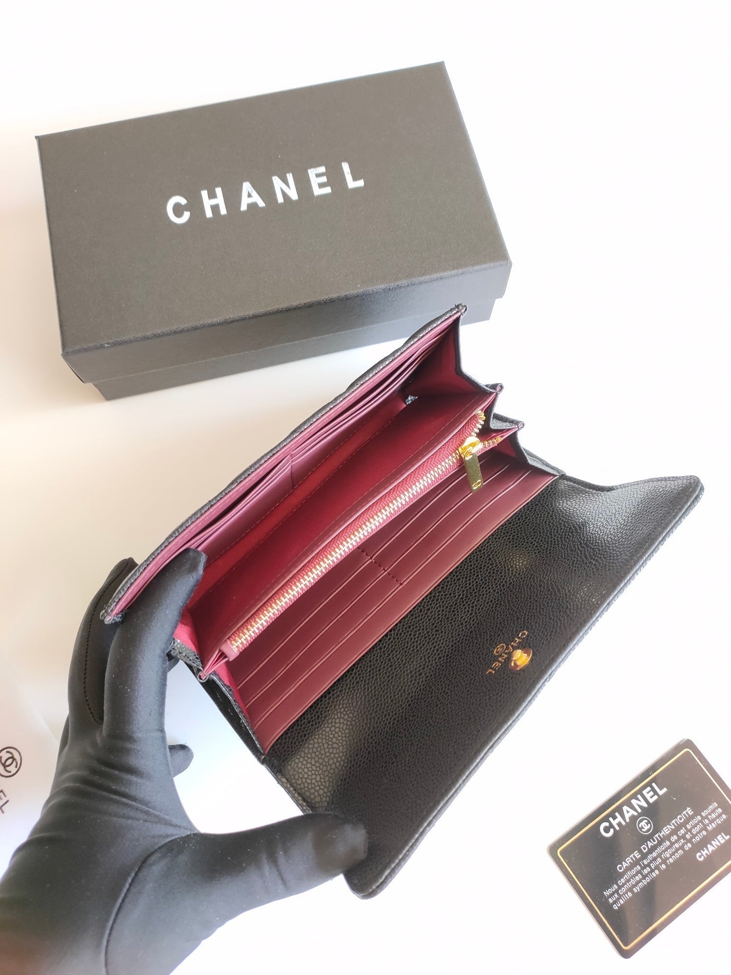 CC CLASSIC LONG PURSE CAVIAR 19 BLACK GRAINED CALFSKIN