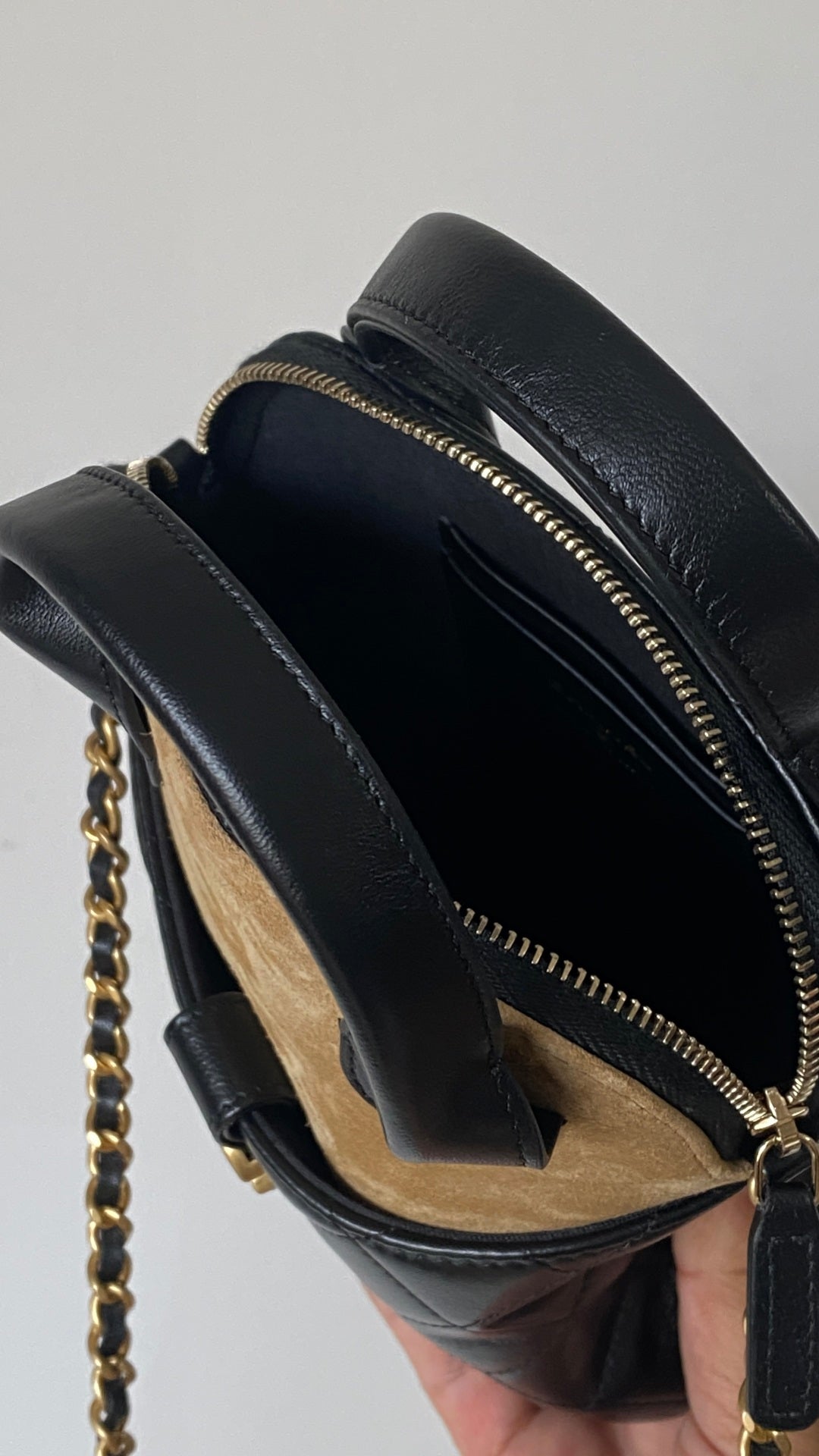 CC Clutch with chain 18 black brown suede calfskin