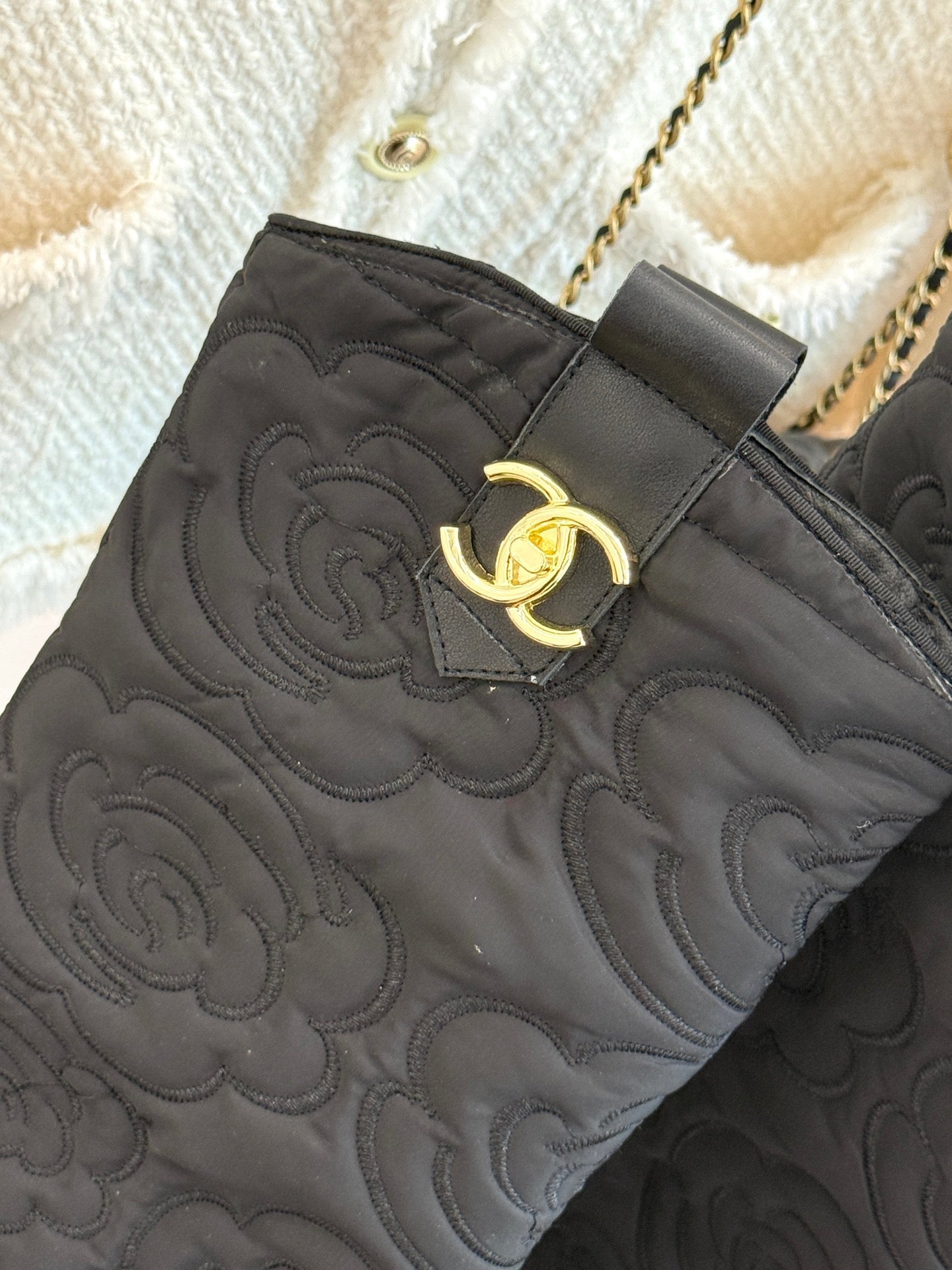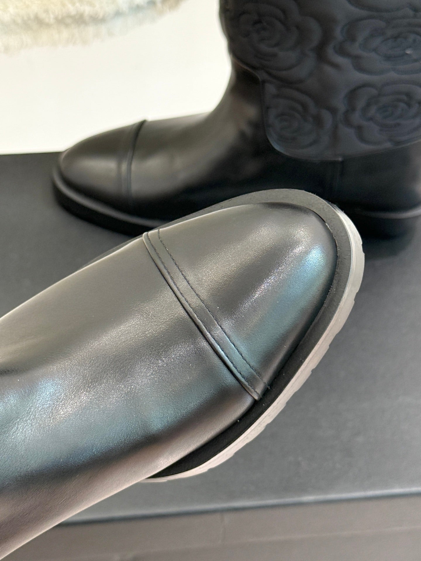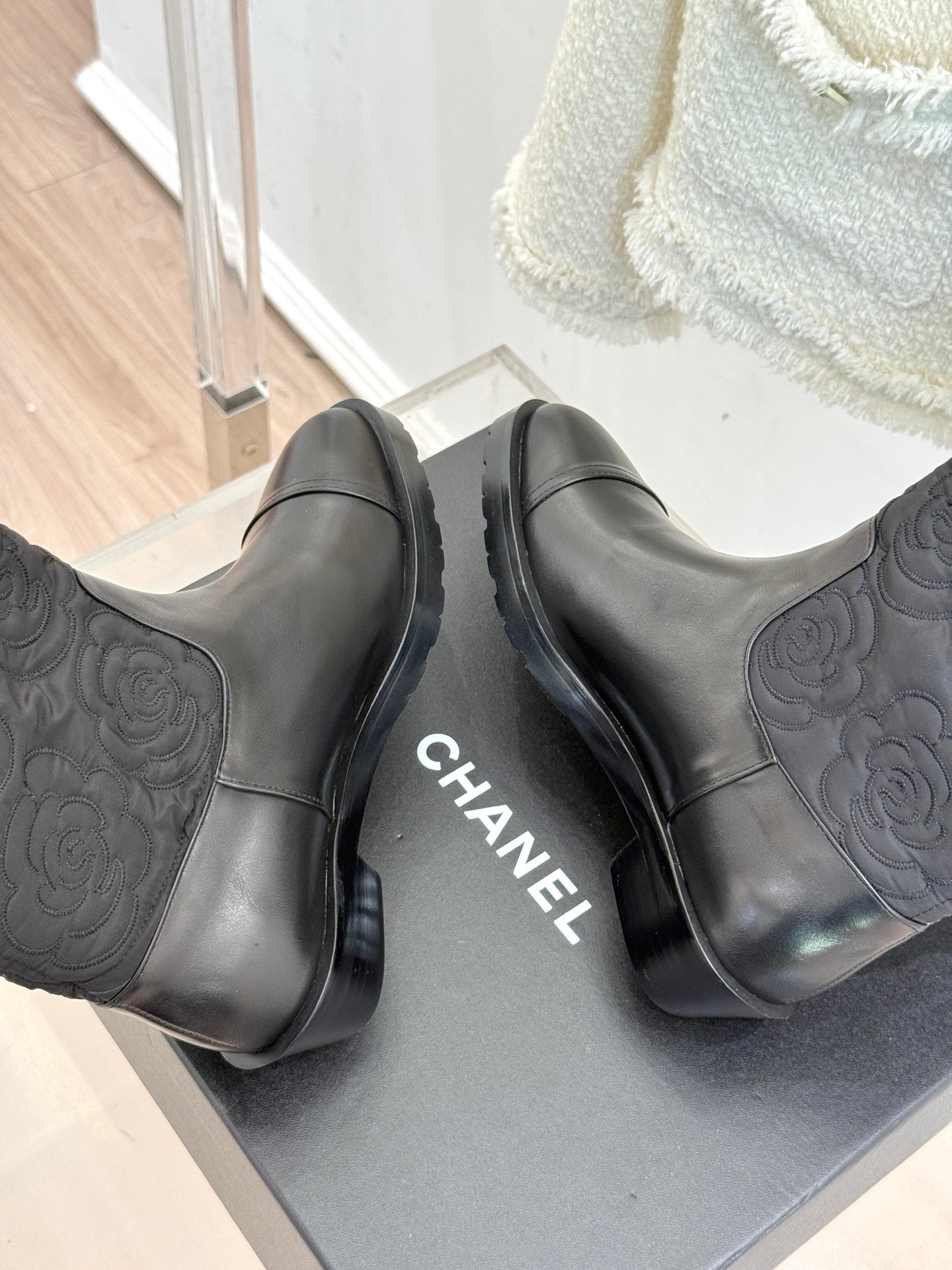 CC cowboy mid-calf boots black sheepskin denim fabric 511980