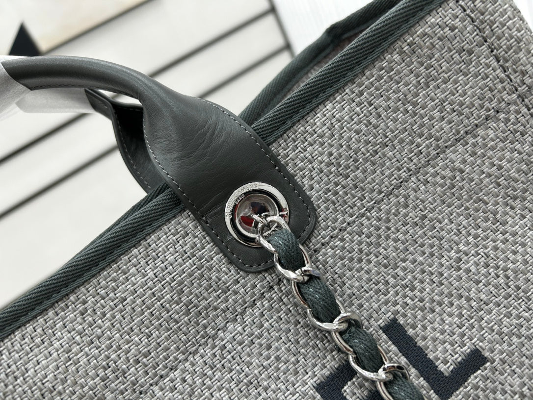 CC Deauville Tweed Bag Dark Green Leather Gold Hardware 18