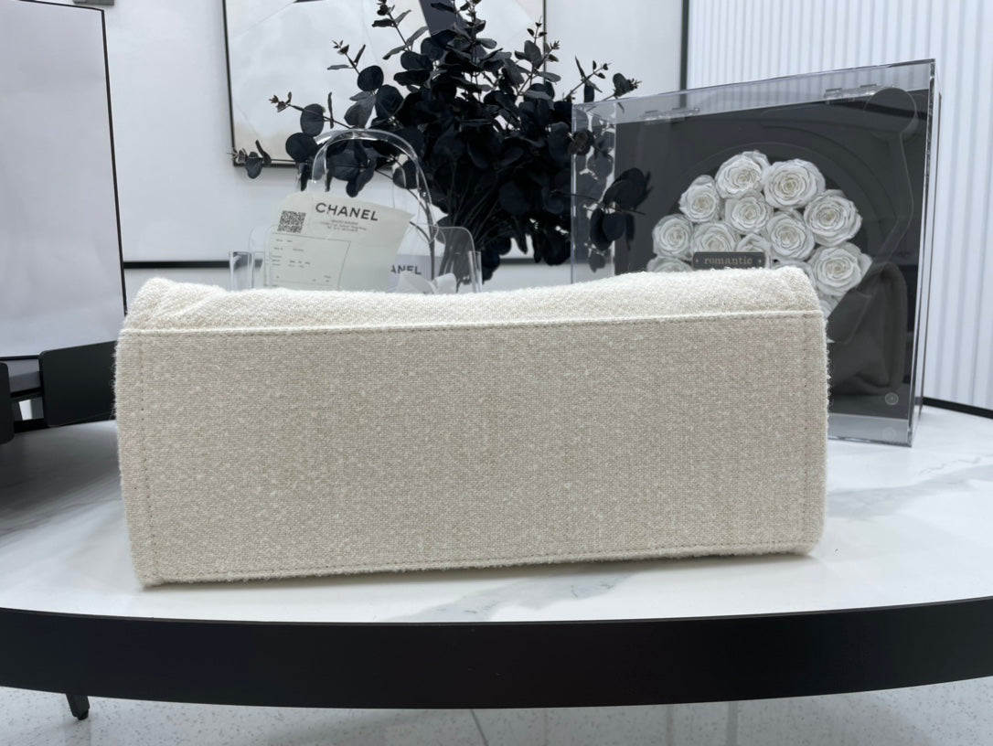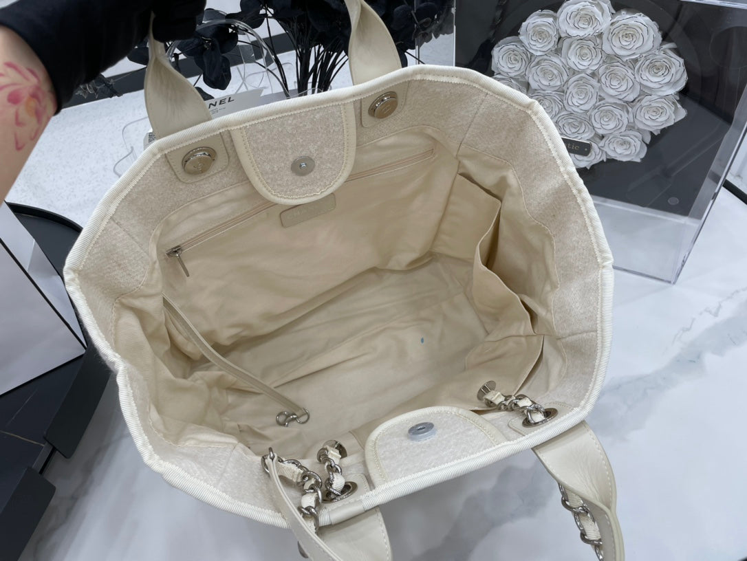 CC Deauville Tweed Bag Light Beige Leather Silver Hardware 9