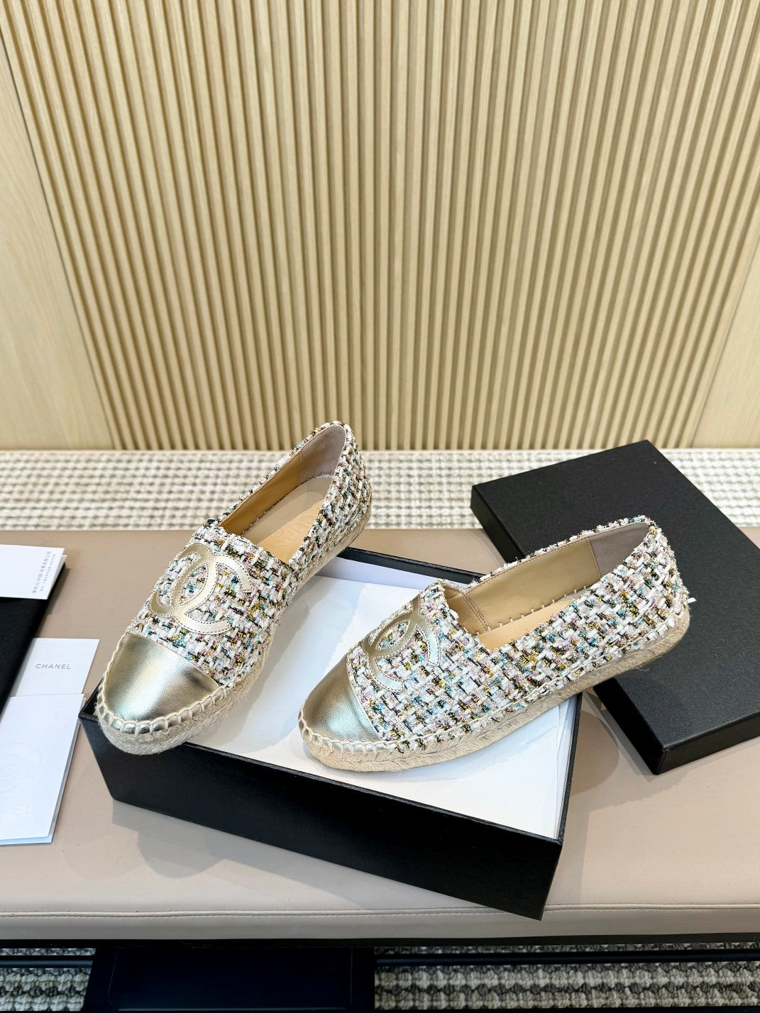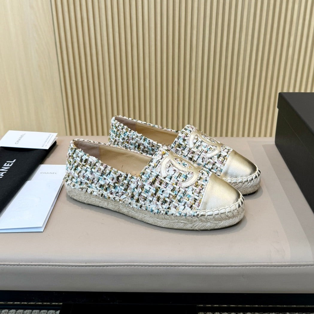 cc espadrilles multicolor tweed gold metalic calfskin