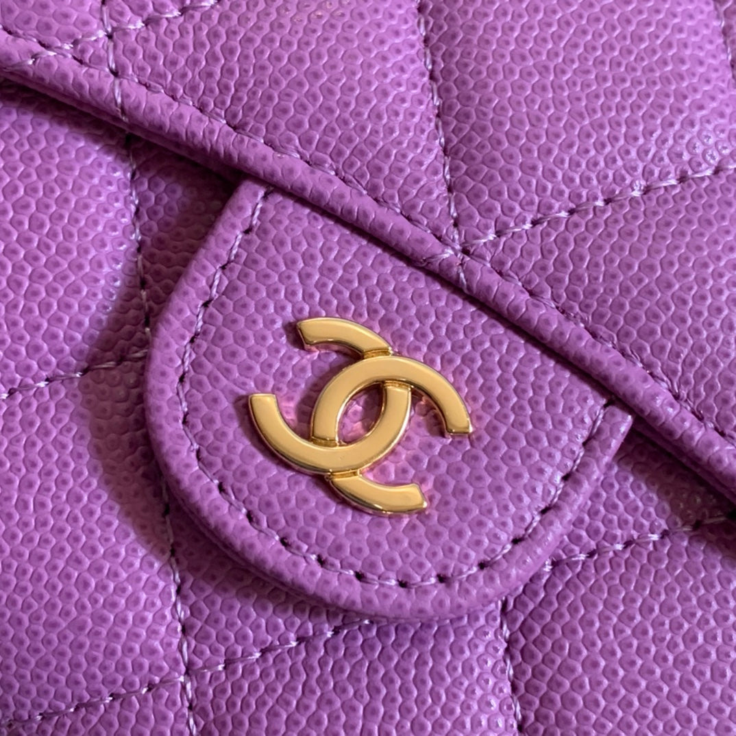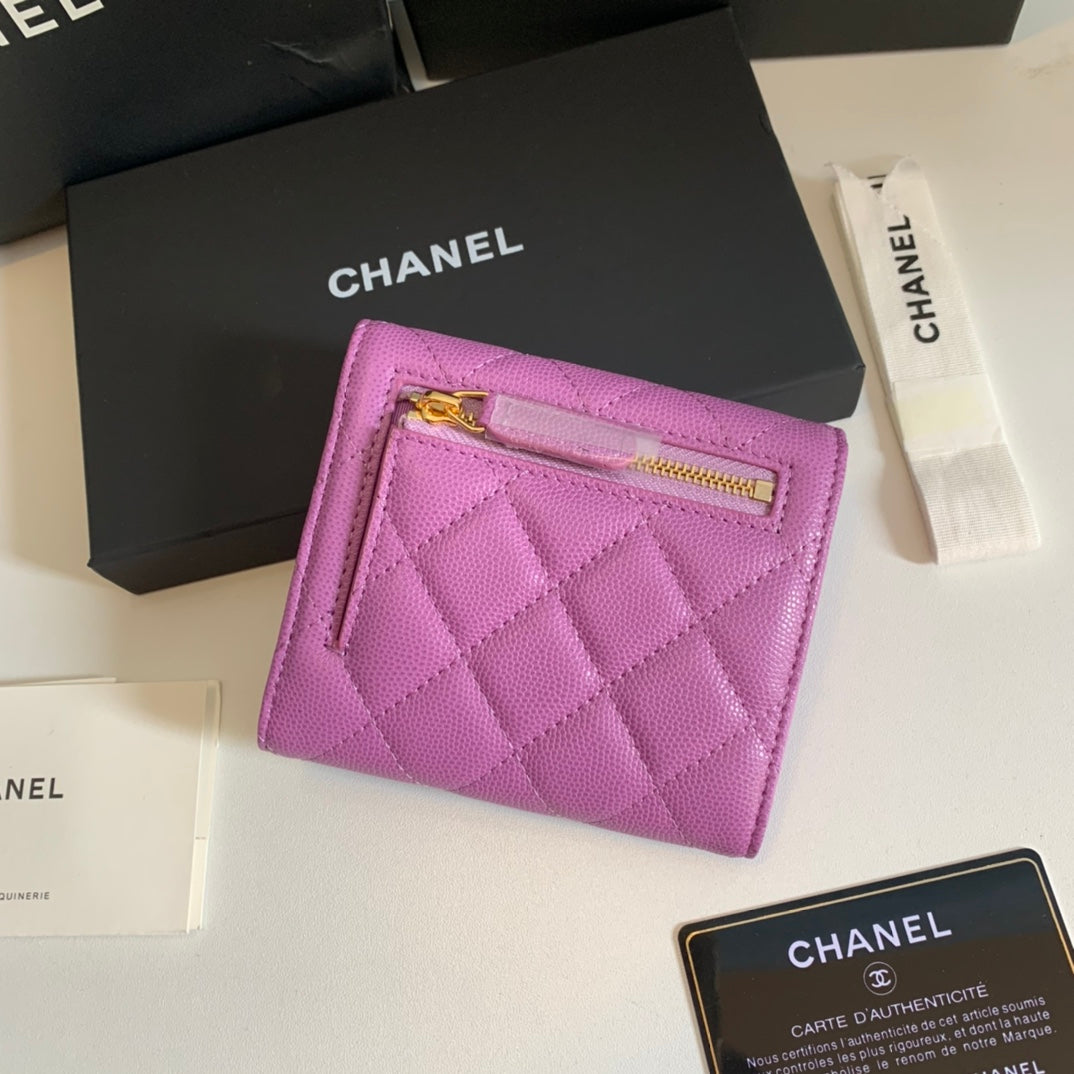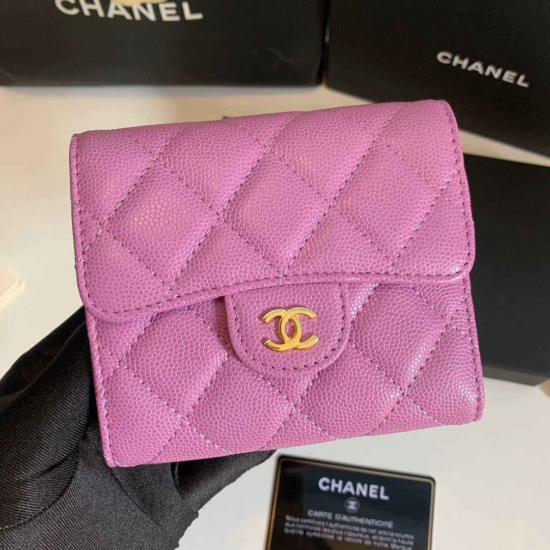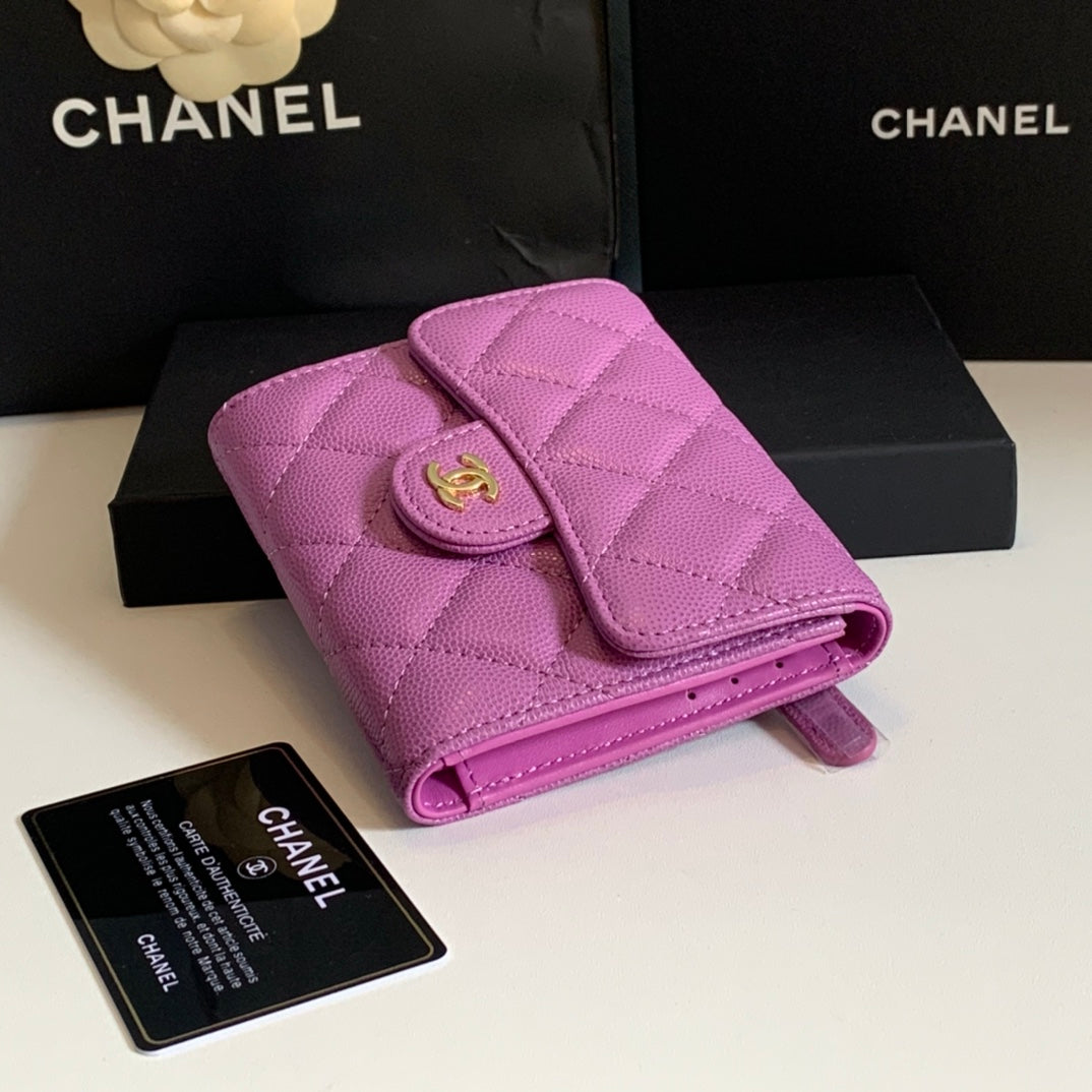 CC FLAP CARD HOLDER 11.5 HOT PINK GRAINED CALFSKIN GOLD ICON