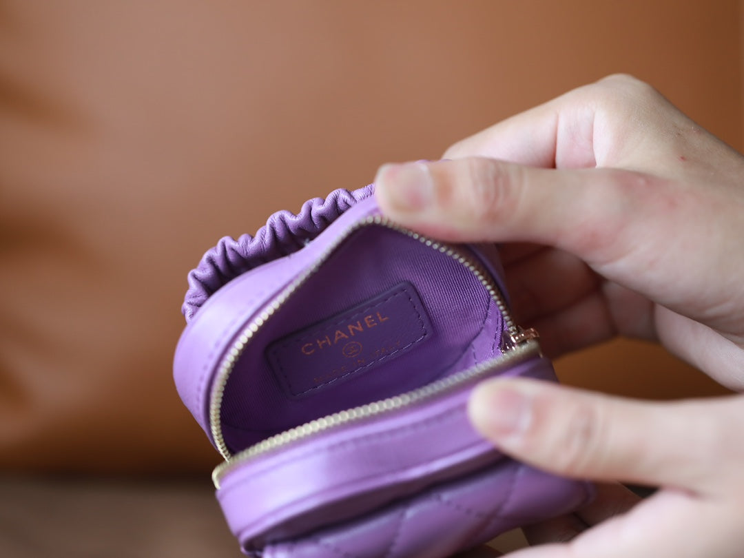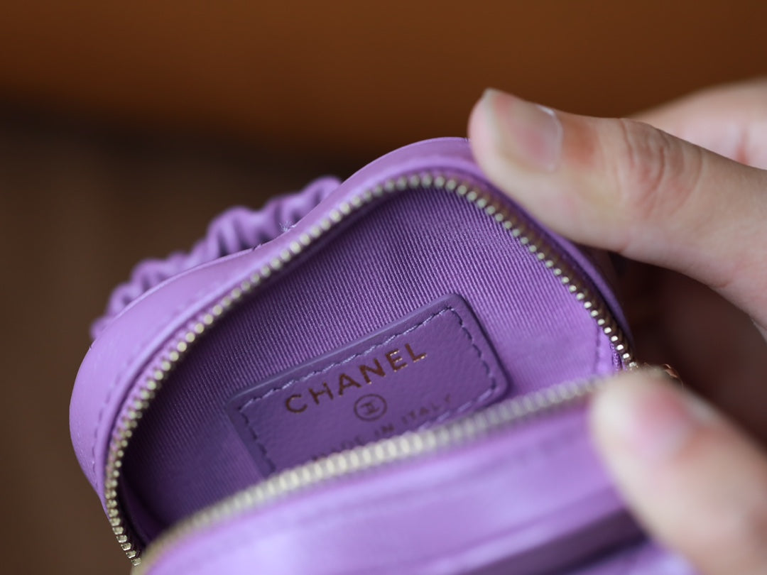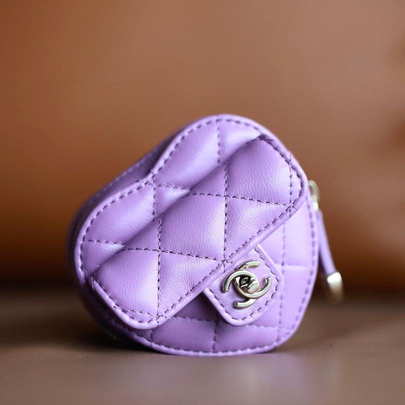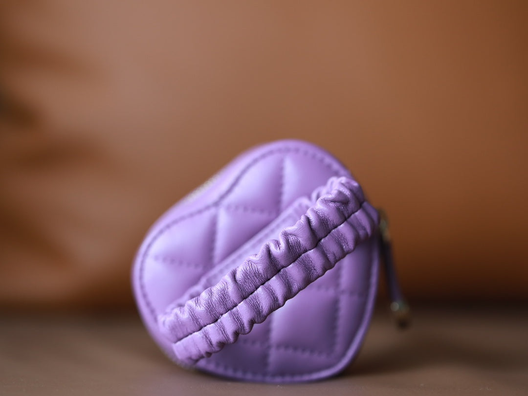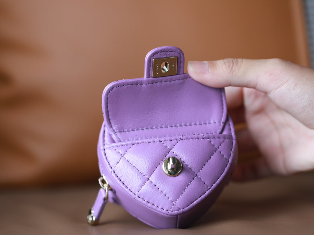 CC HEART COIN PURSE 8.5 PURPLE CALFSKIN