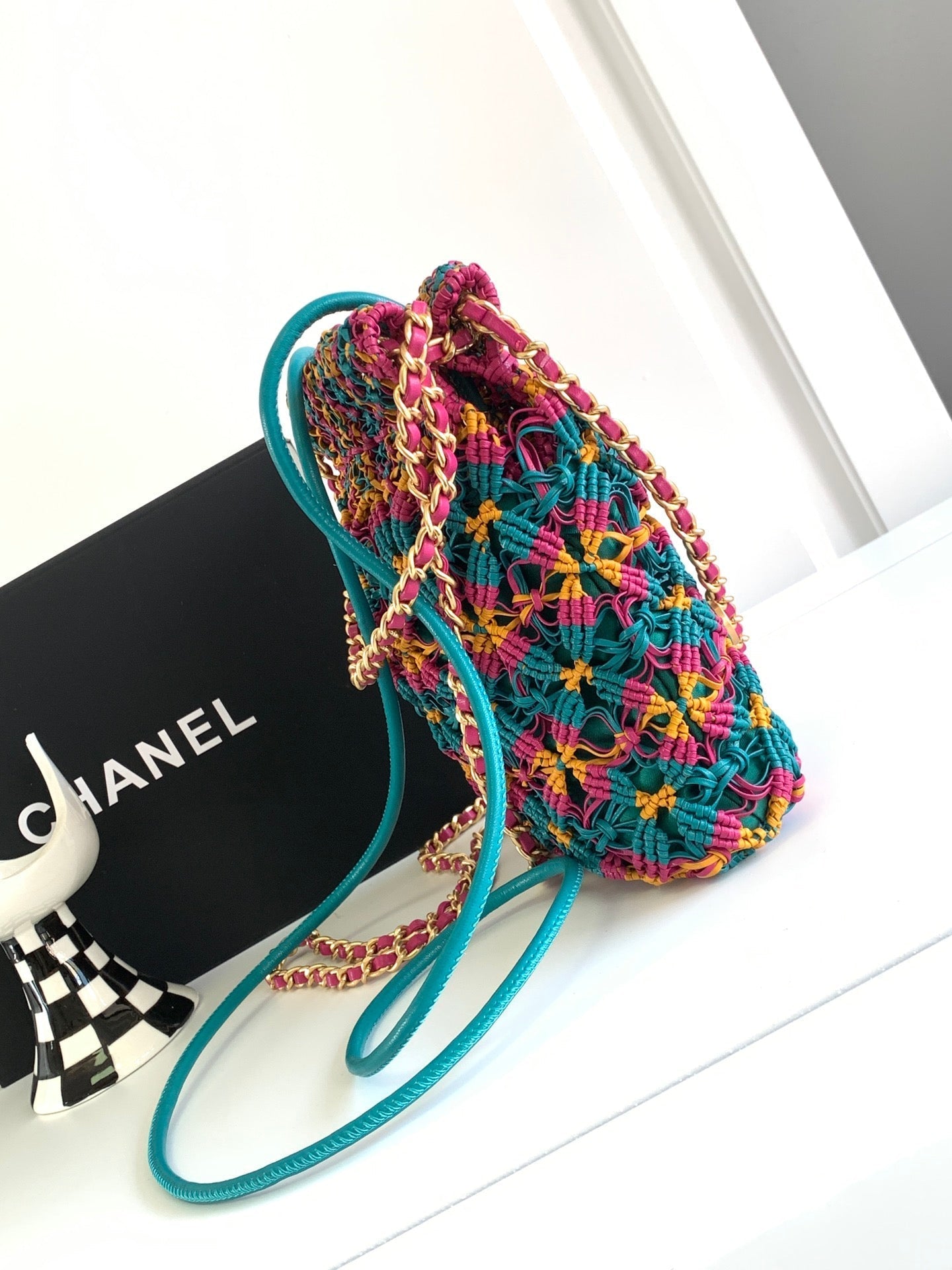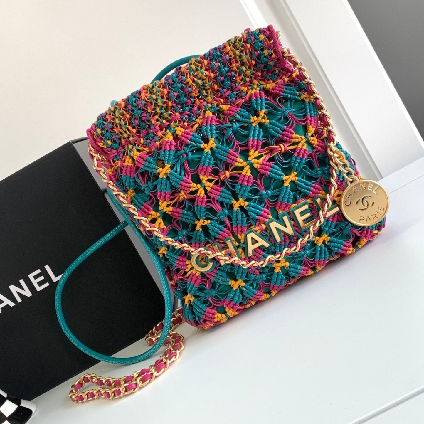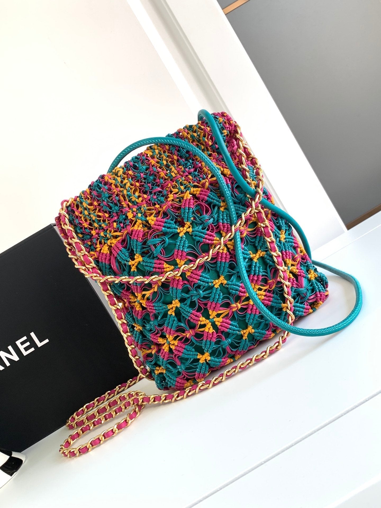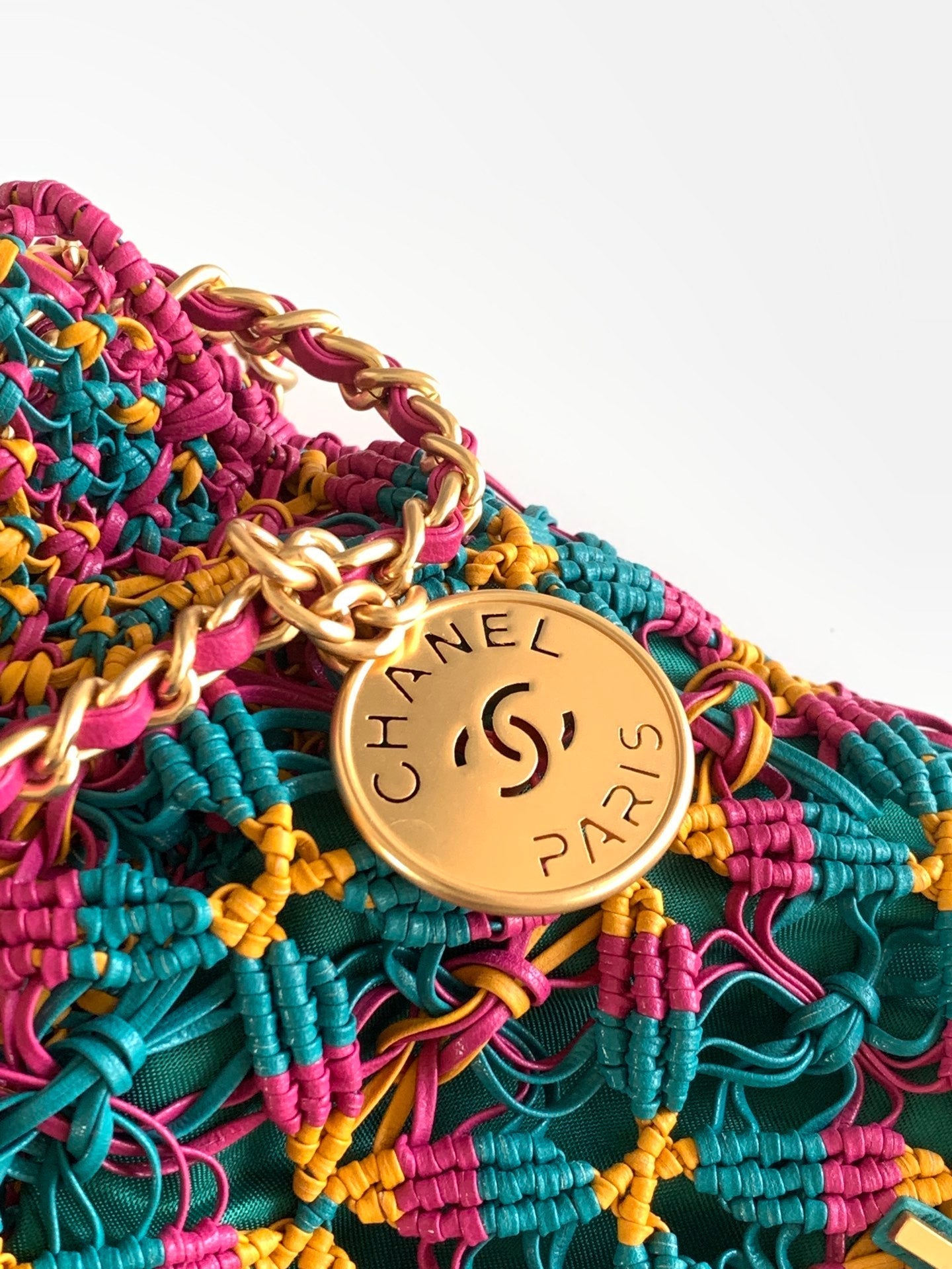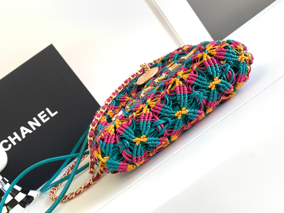 CC Mini Macrame 22 Hobo Bag 19cm Multicolor Green Calfskin Gold Hardware