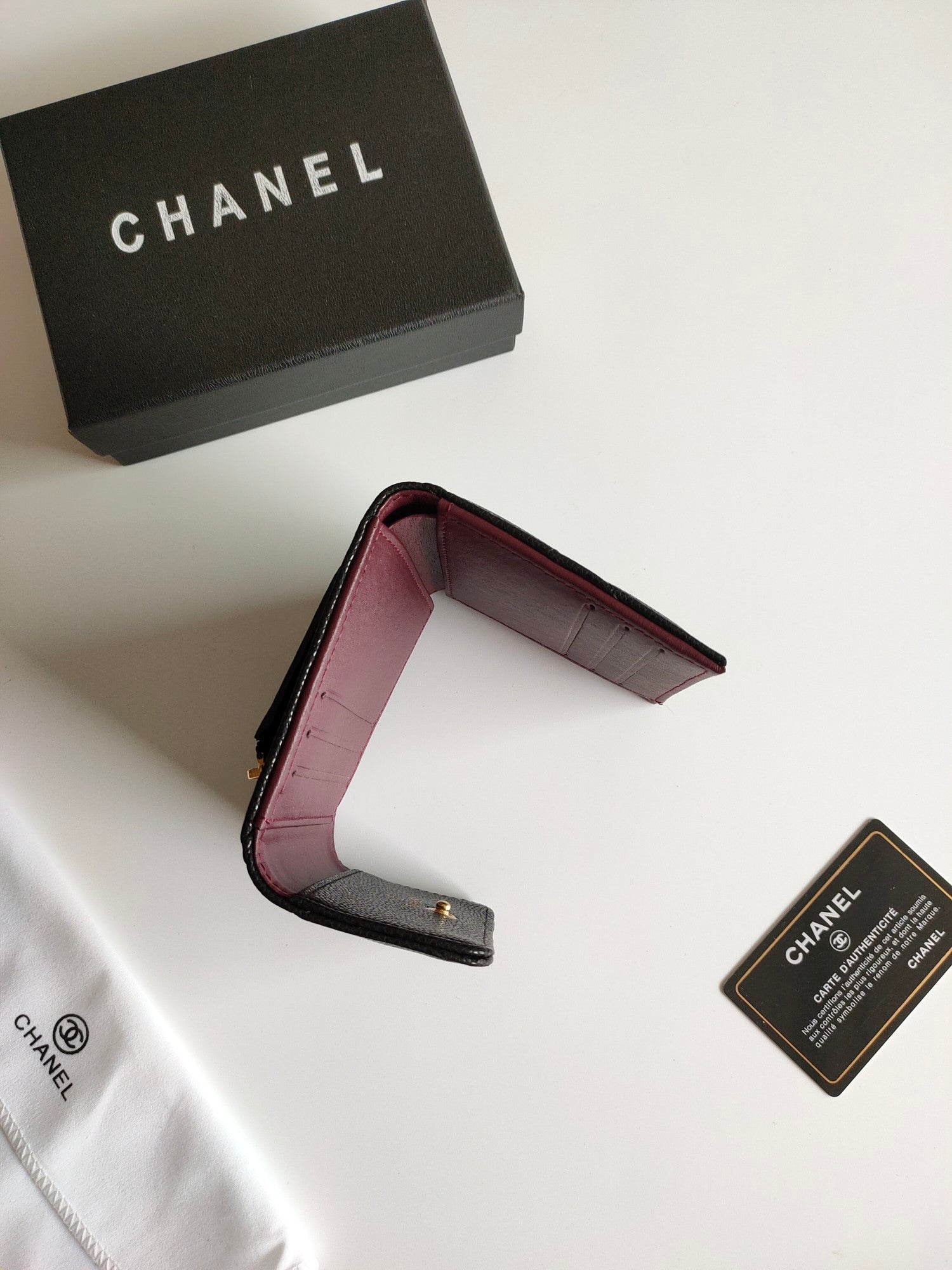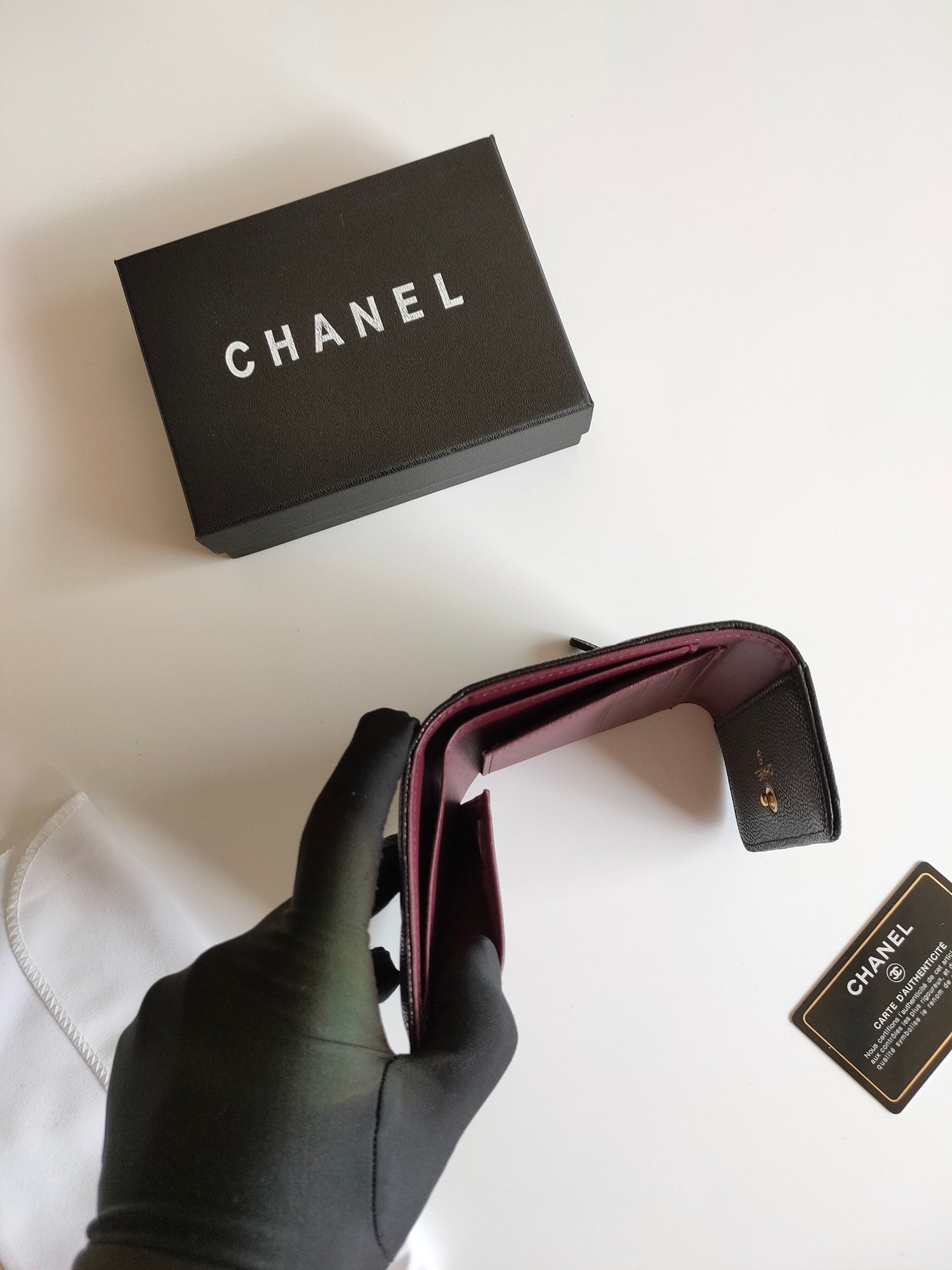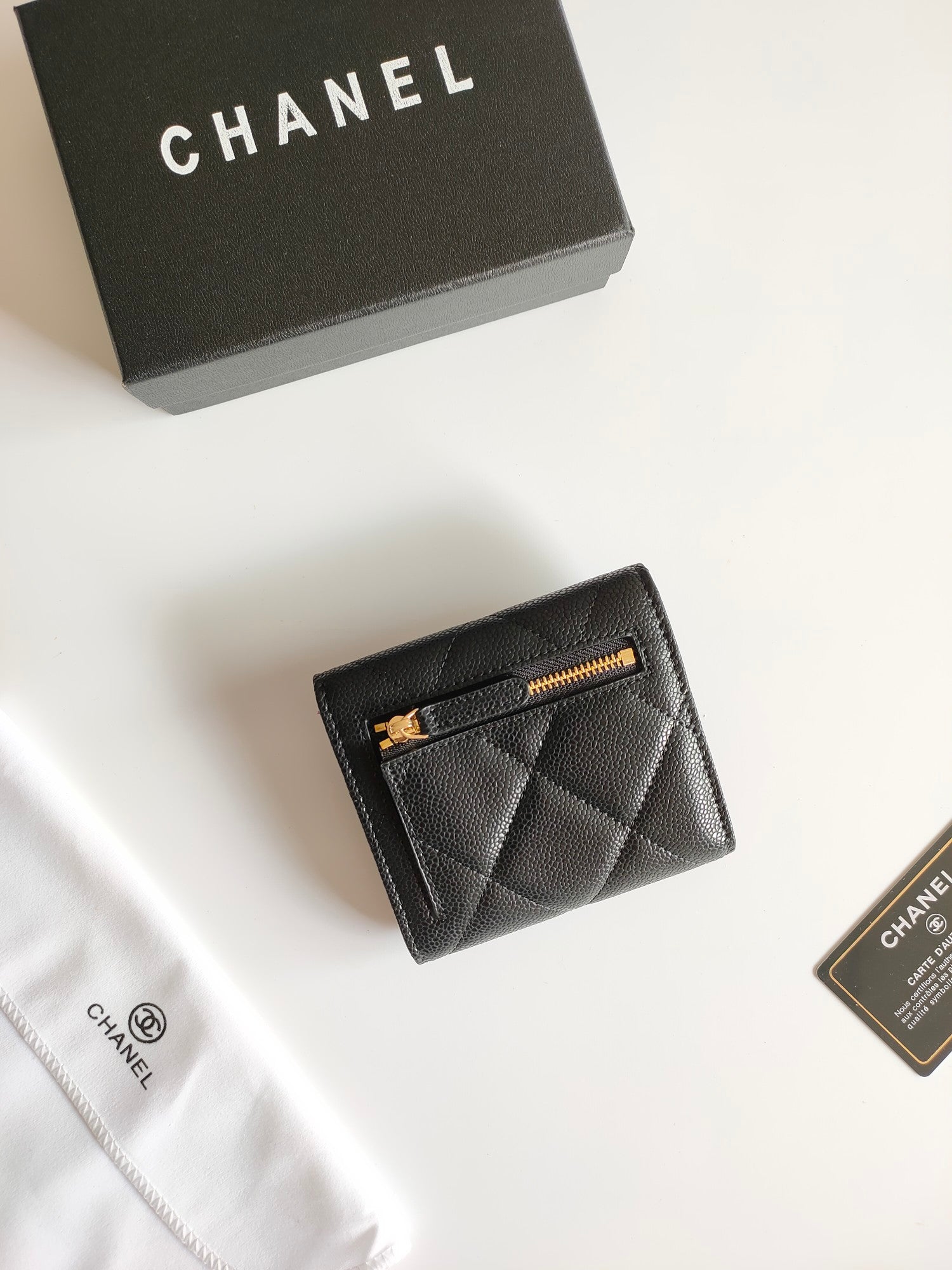 CC SQUARE PURSE 12 BLACK GRAINED CALFSKIN GOLD ICON