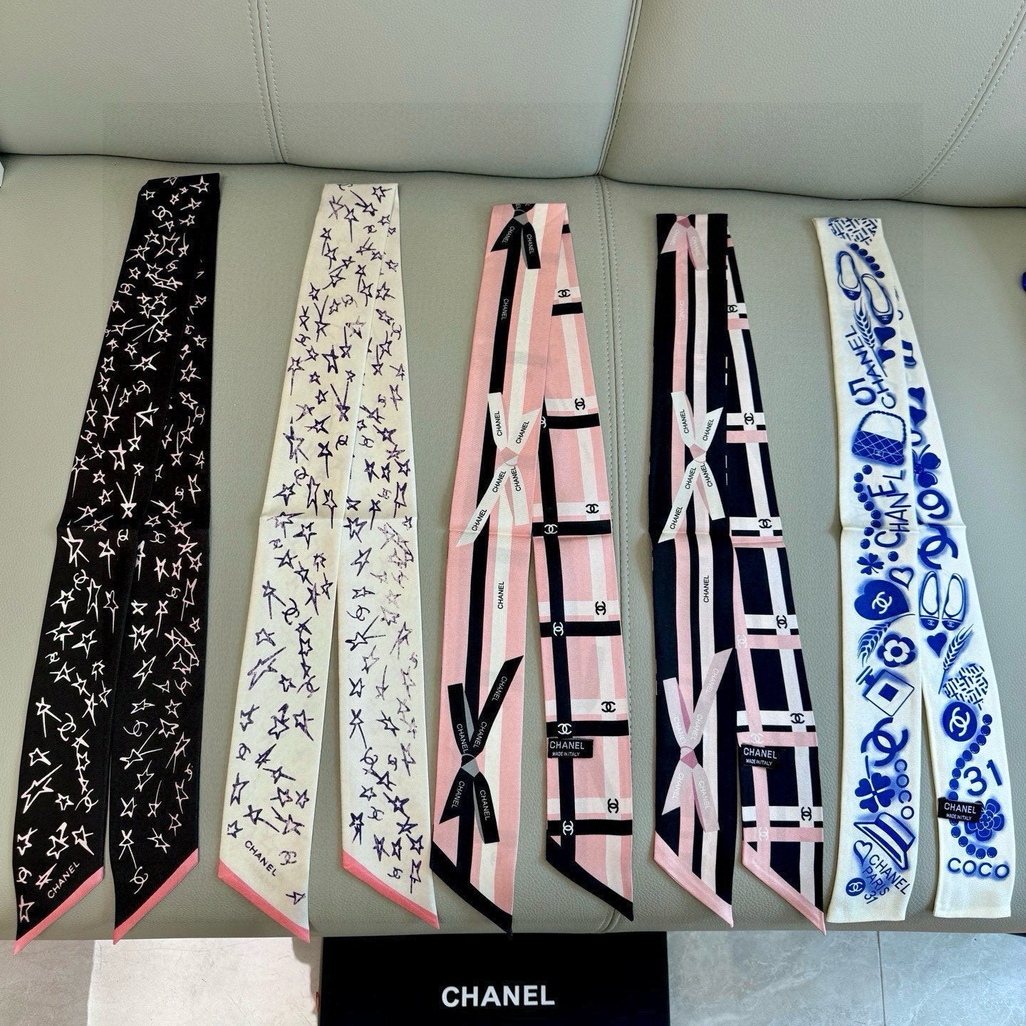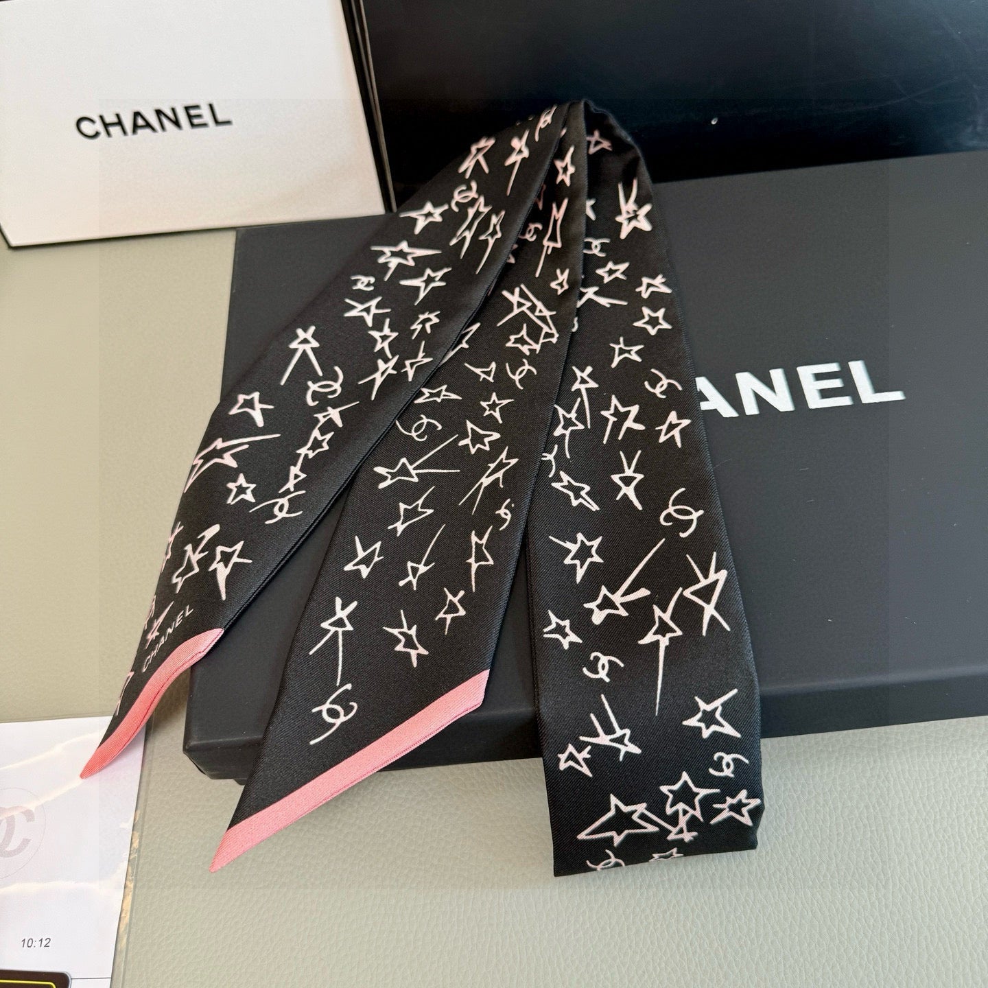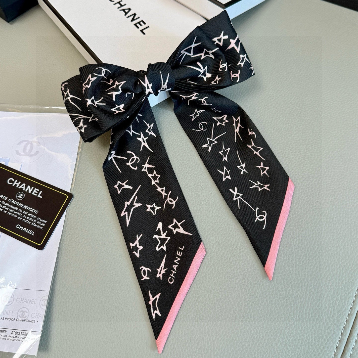 CC Twilly Mini Star 120cm Black White Mulberry Silk 941929
