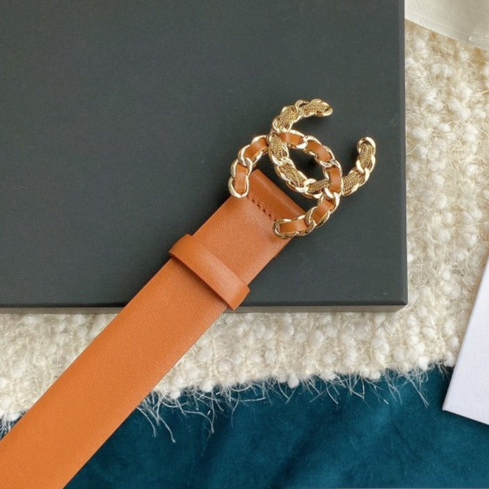 CC WOMEN'S BELT 3.0CM BUCKLE MULTICOLOR LEATHER BROWN