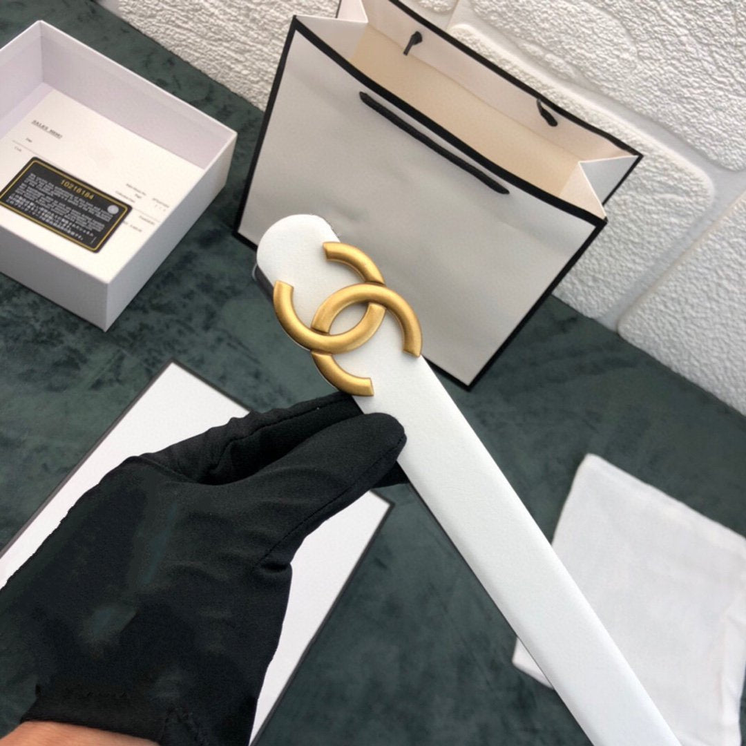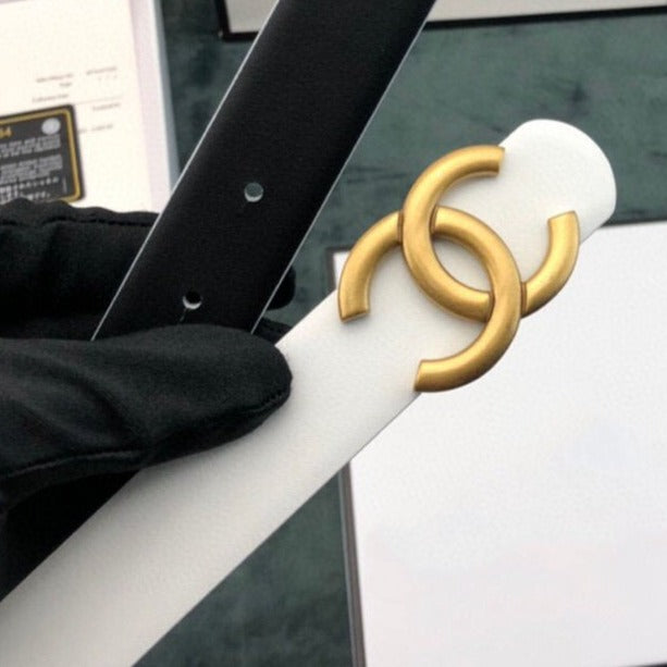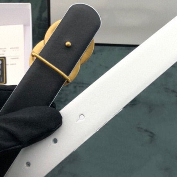 CC WOMEN'S BELT 3.0CM LEATHER WHITE BUCKLE GOLD CONVEX