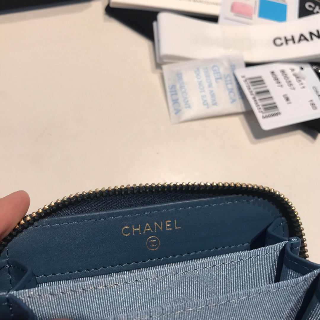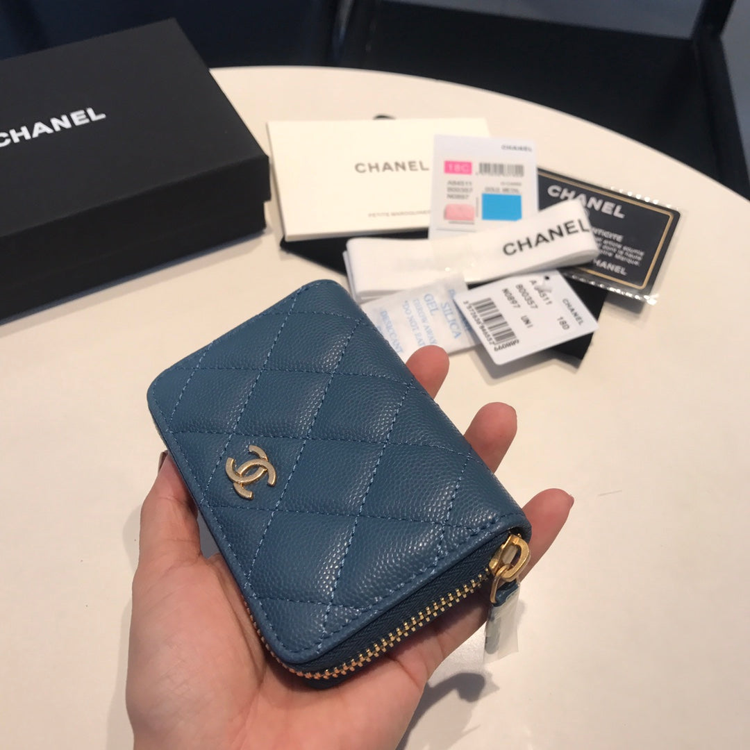CC ZIPPED CAVIAR PURSE 11 AEGEAN CALFSKIN GOLD ICON