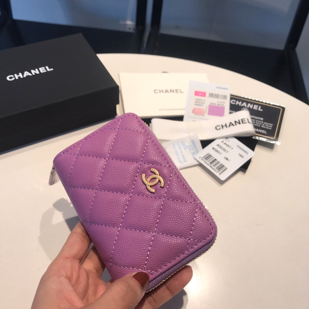 CC ZIPPED CAVIAR PURSE 11 PURPLE CALFSKIN GOLD ICON