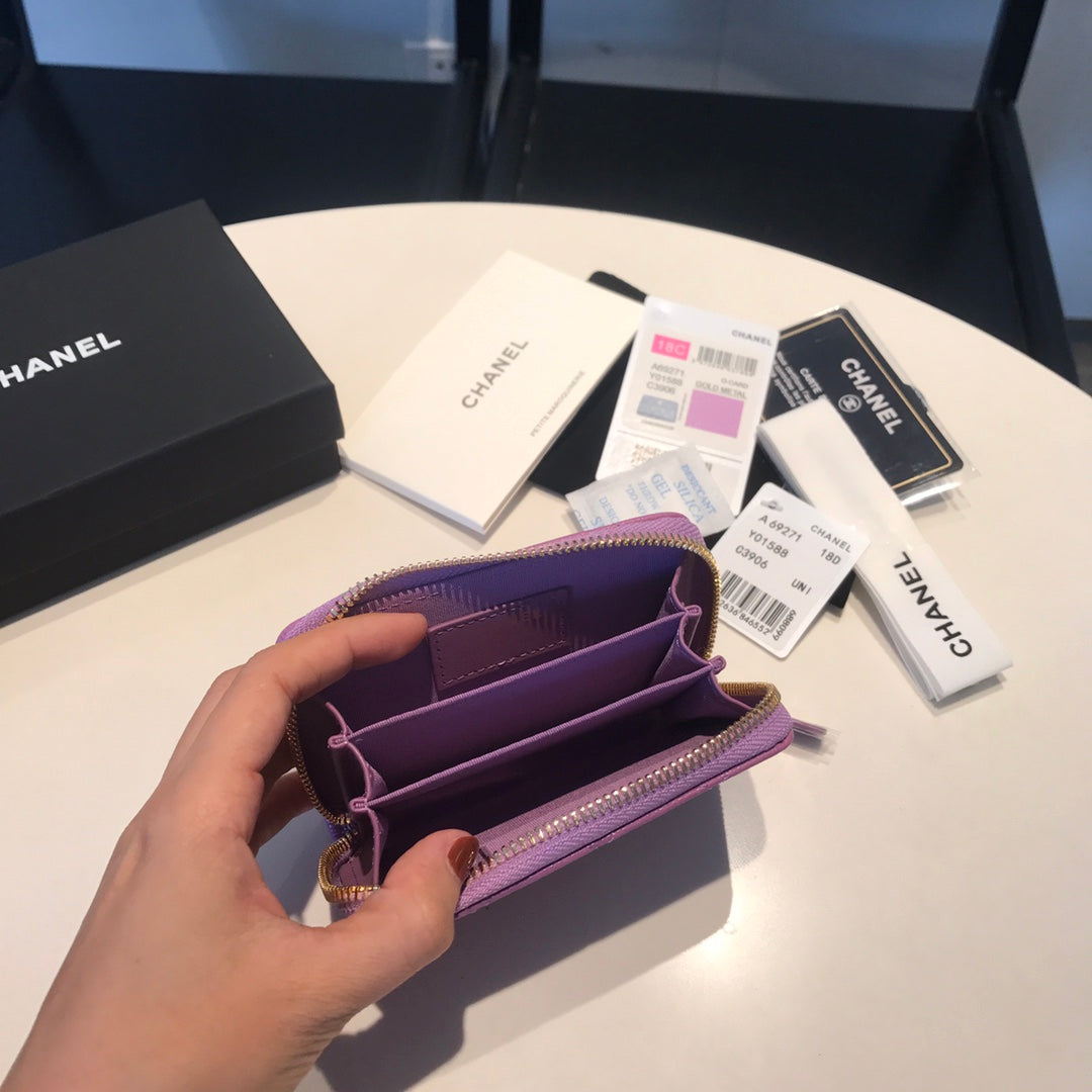 CC ZIPPED COIN BASIC PURSE 11 PURPLE CALFSKIN GOLD ICON