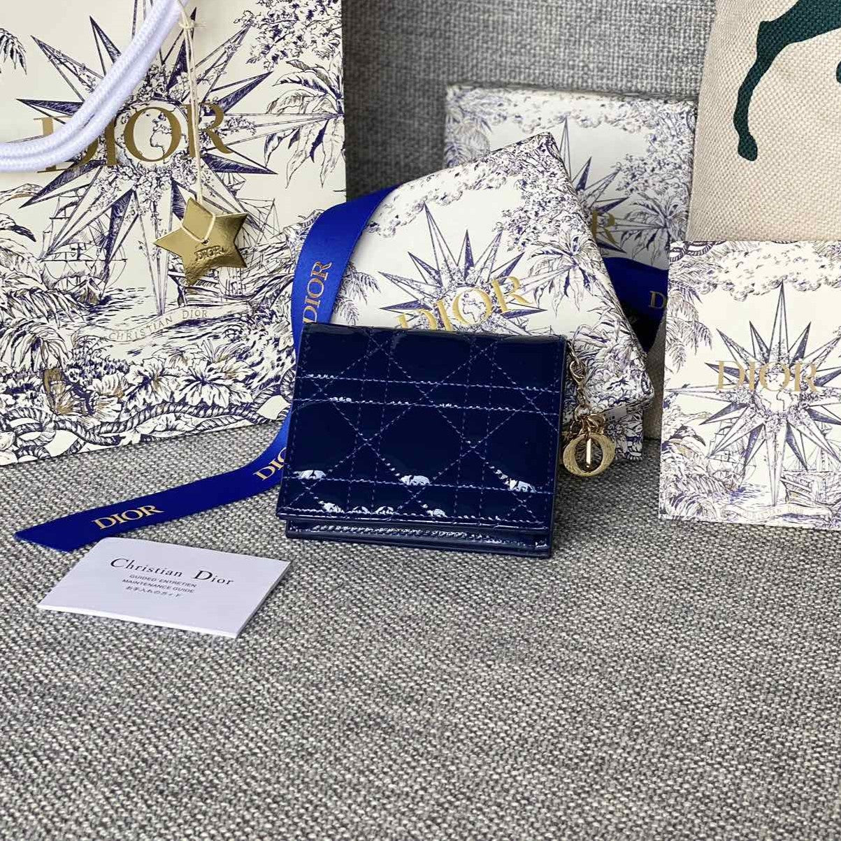 CD Caro 11cm Compact Wallet Shiny Blue Calfskin