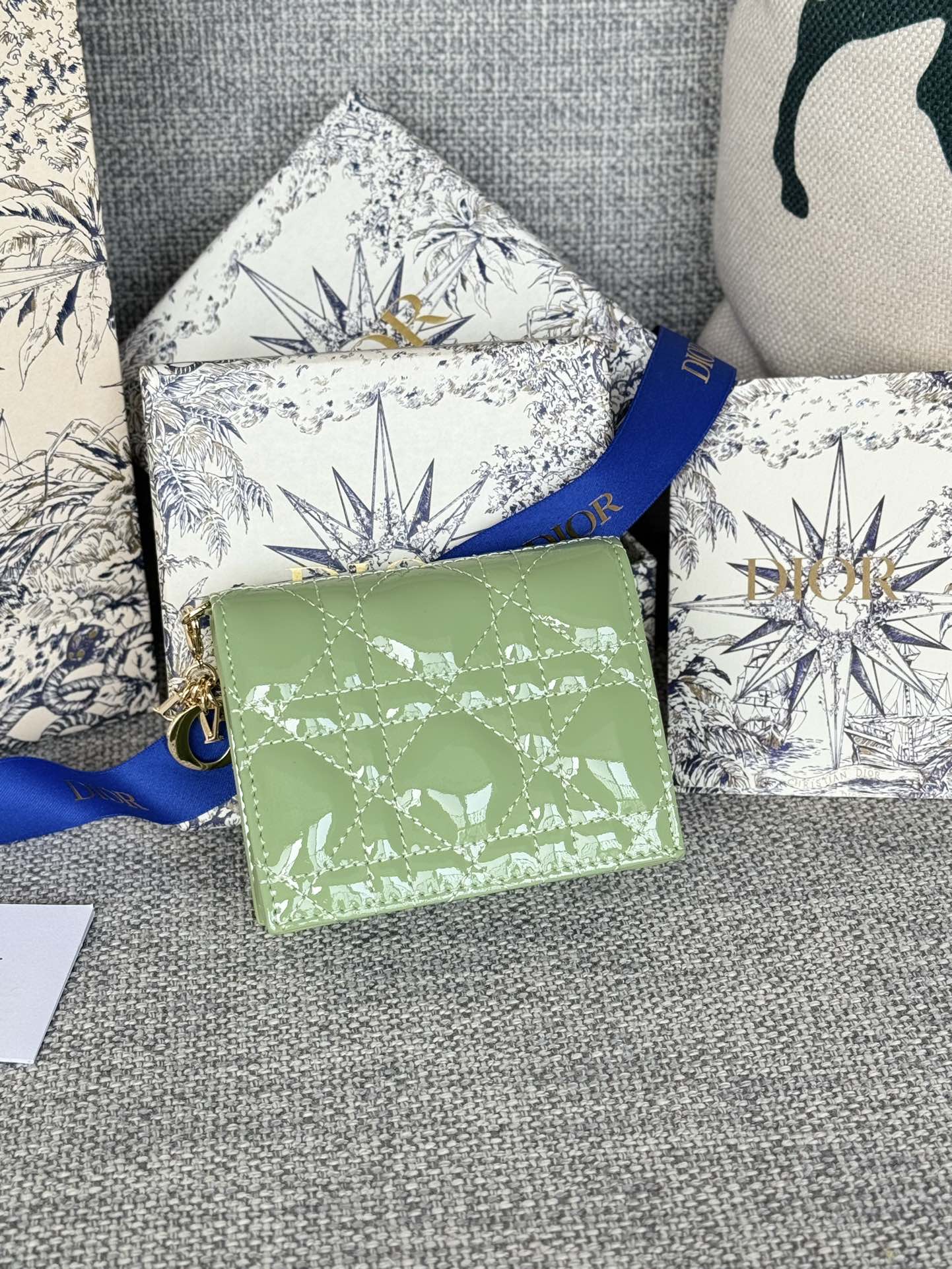 CD Caro 11cm Compact Wallet Shiny Green Calfskin