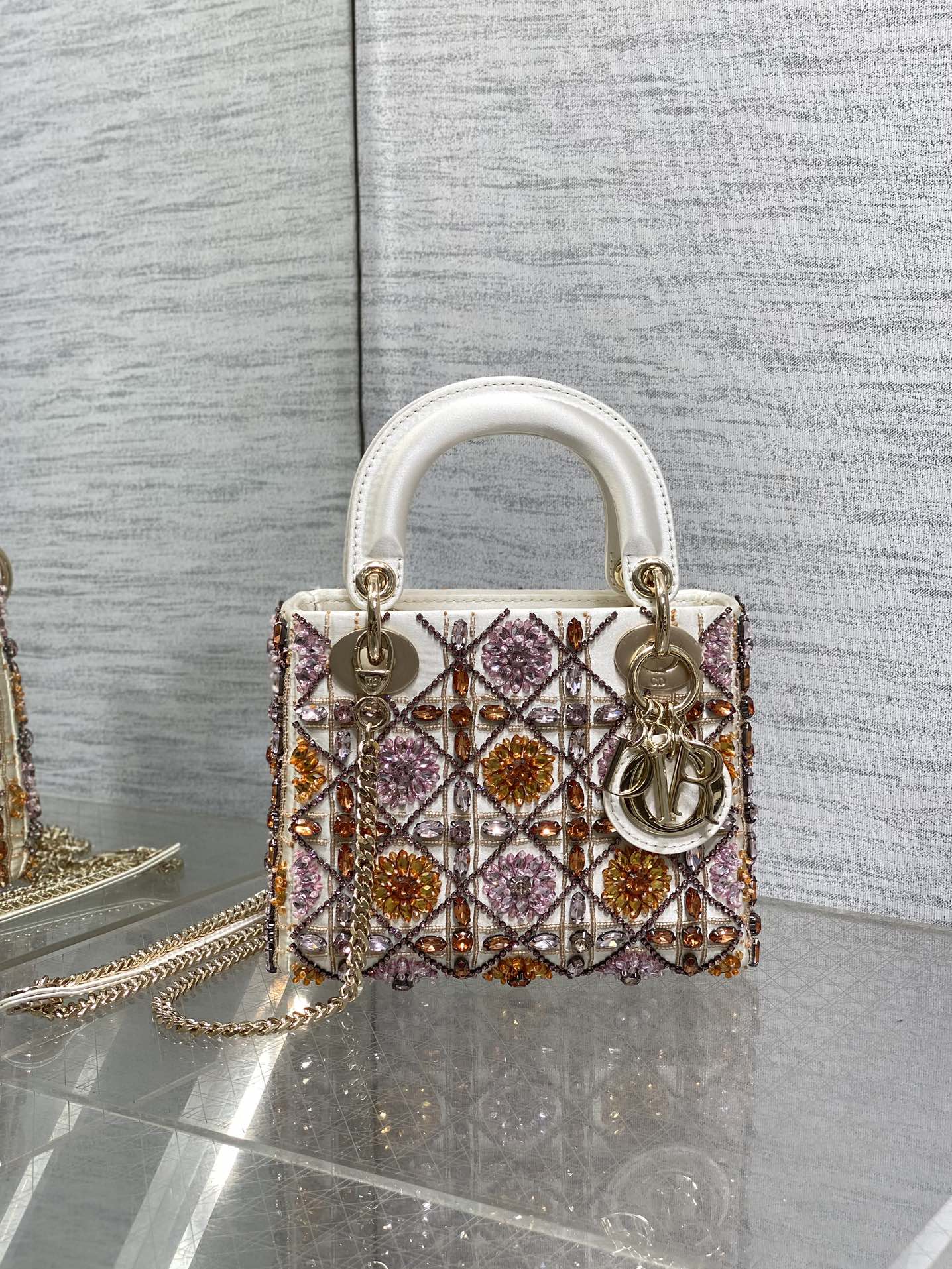 CD Lady 17cm White Canvas Crystal Embellished
