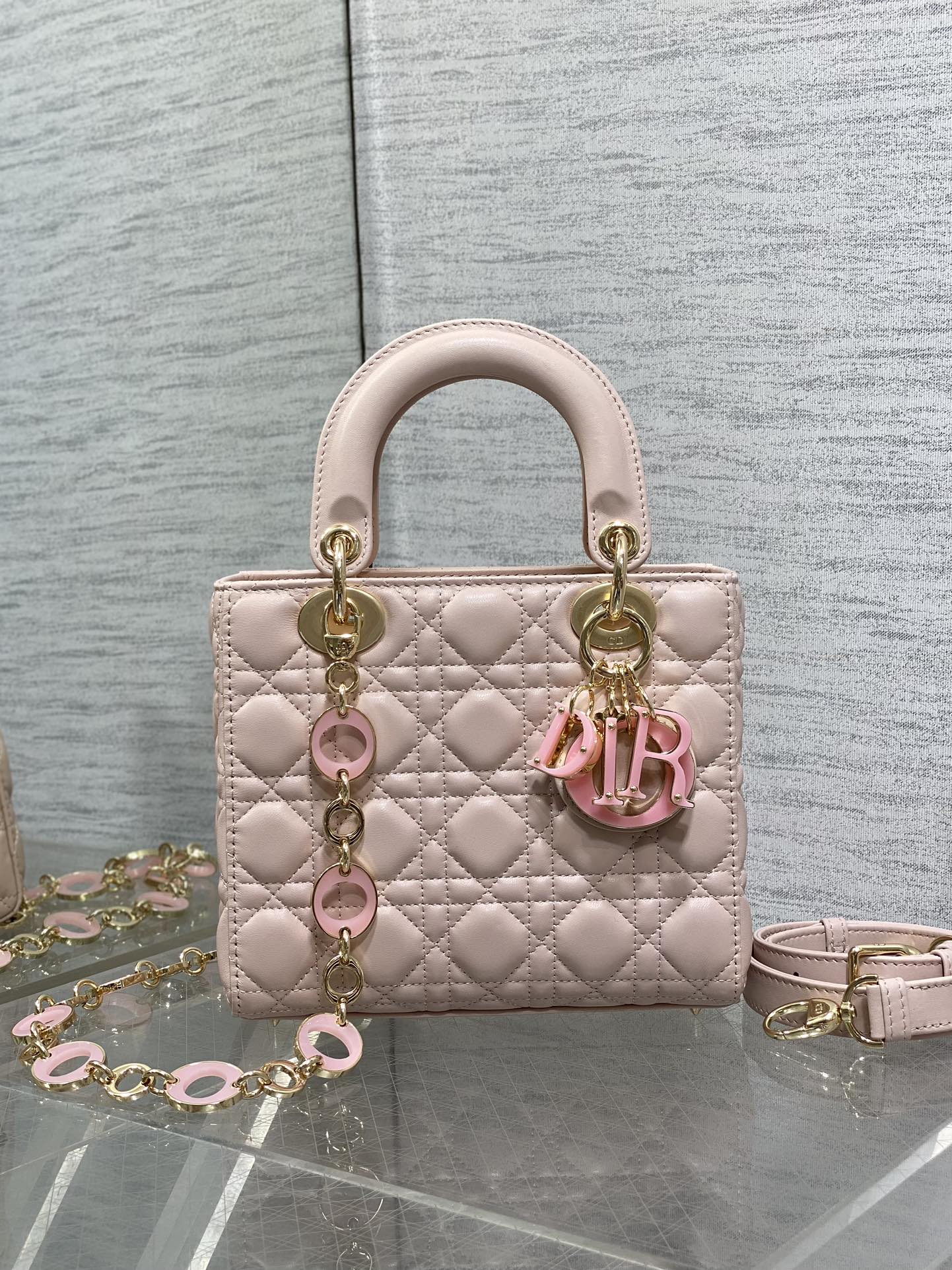 CD Lady Bag 20cm Pink Lambskin Pink Charm