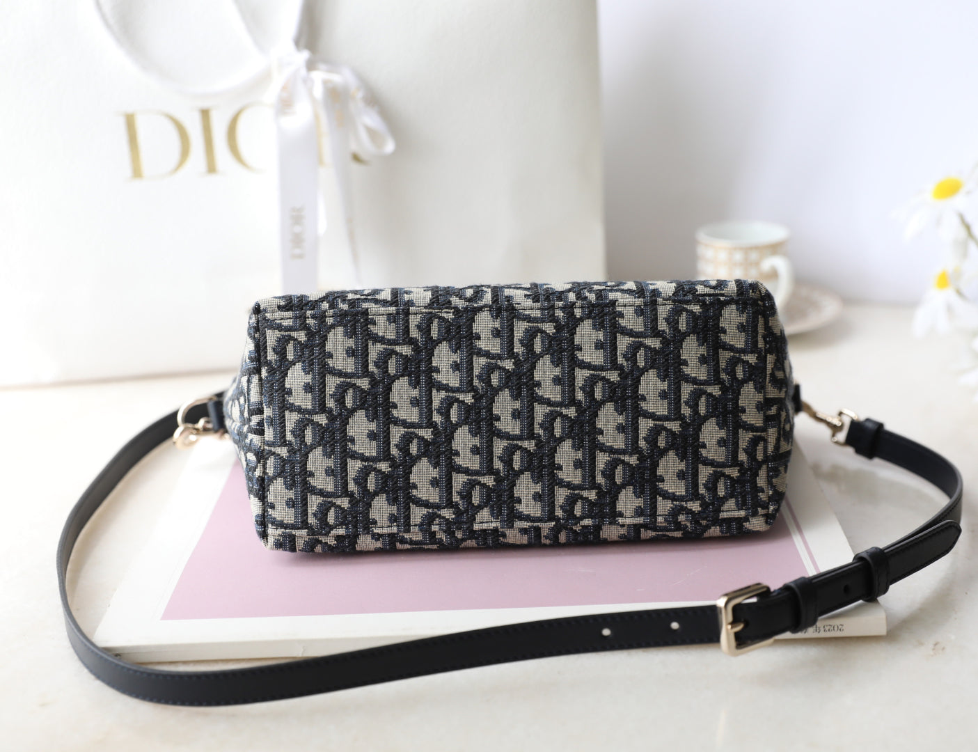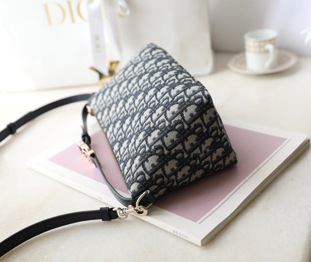 CD Monogram Nonad Lunch Bag Blue Beige Canvas
