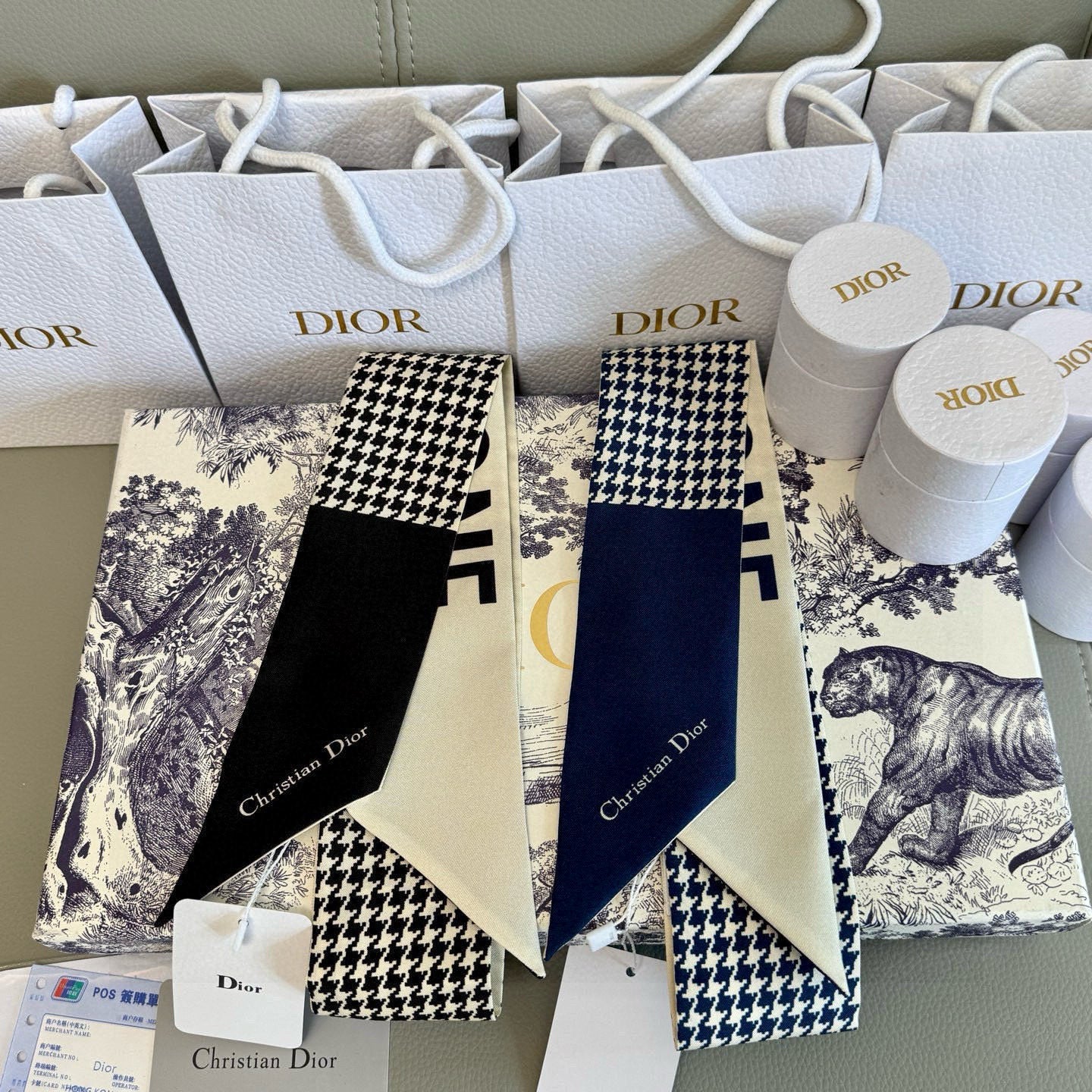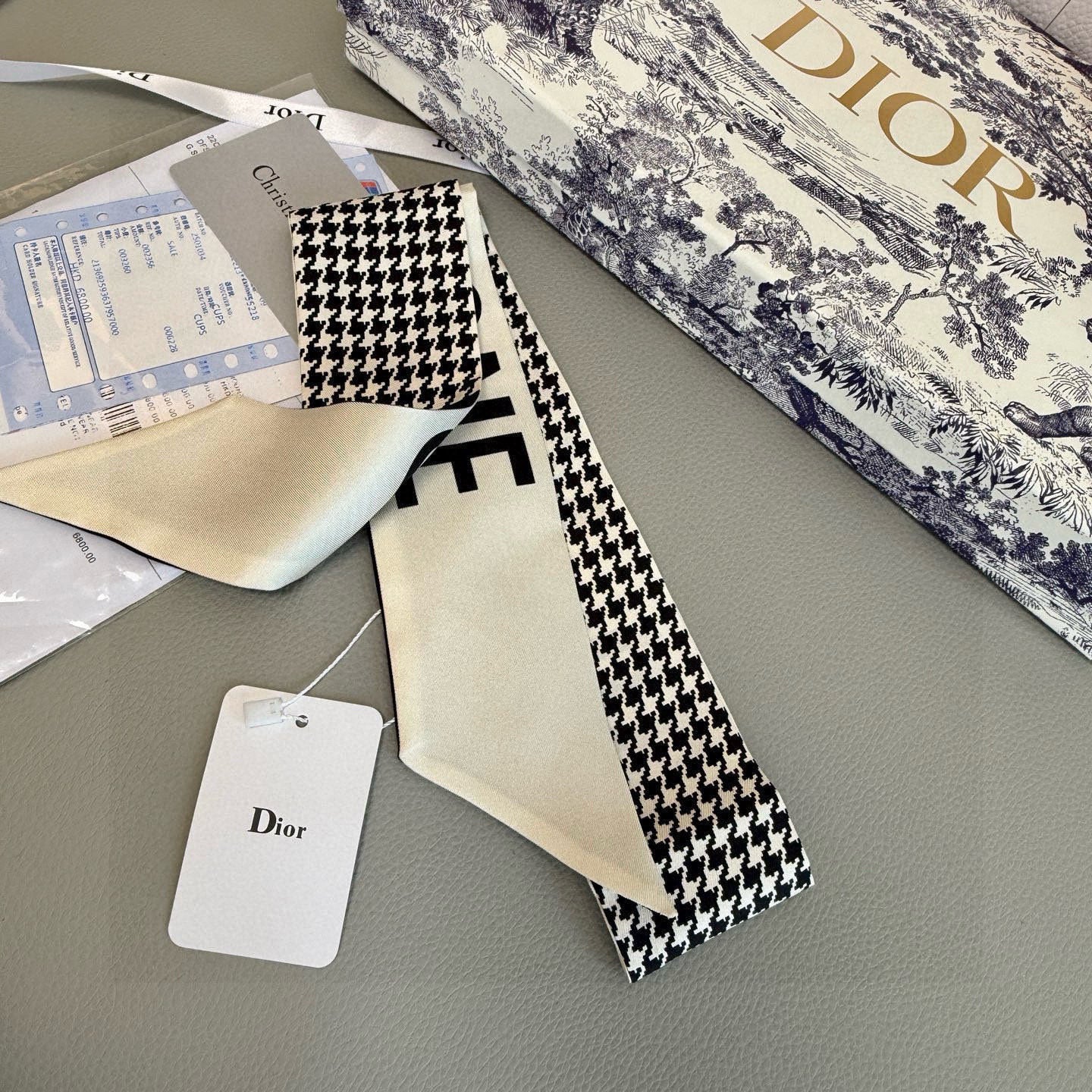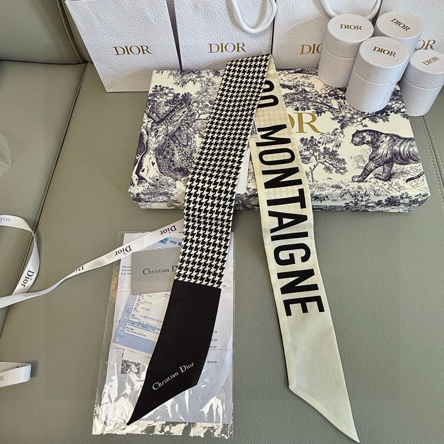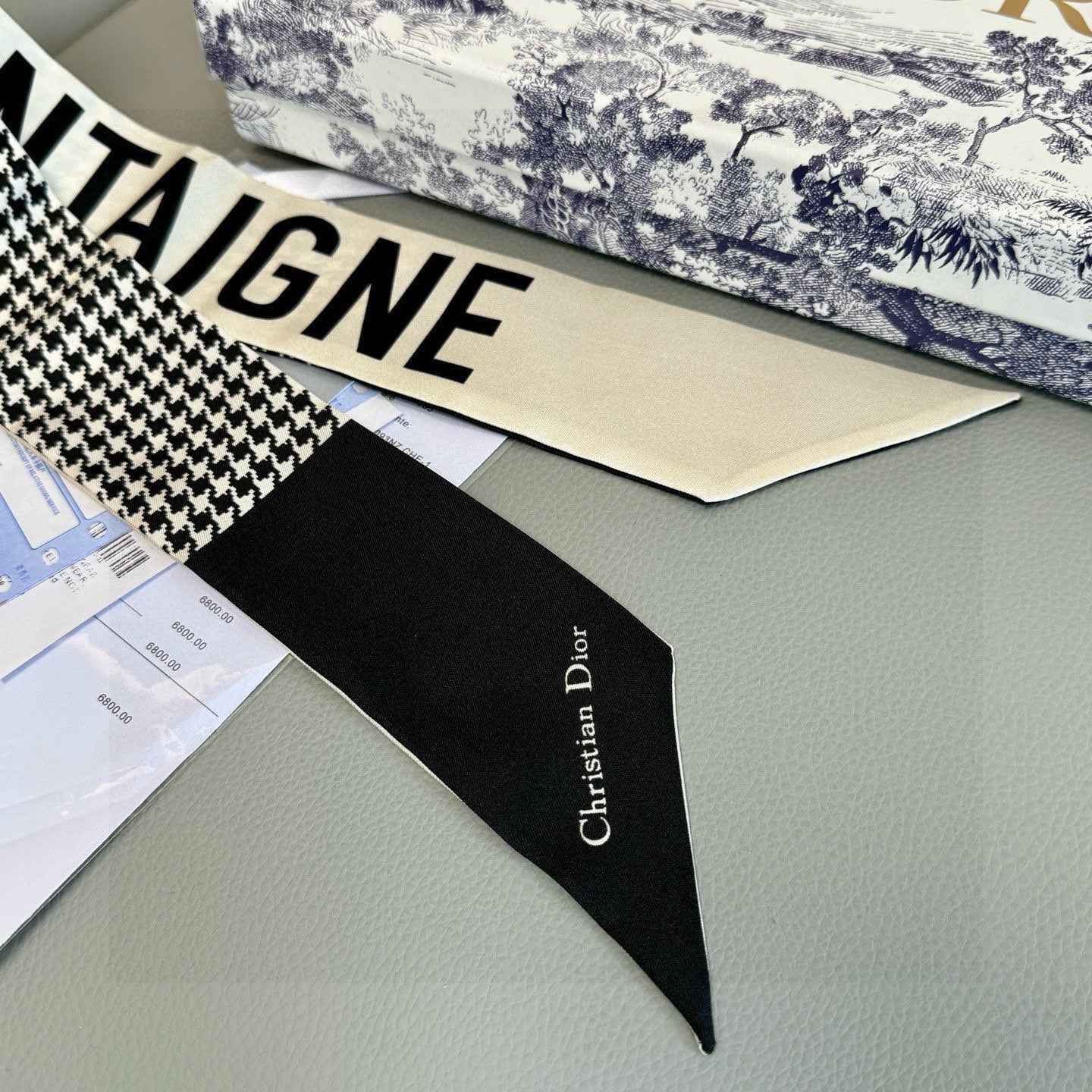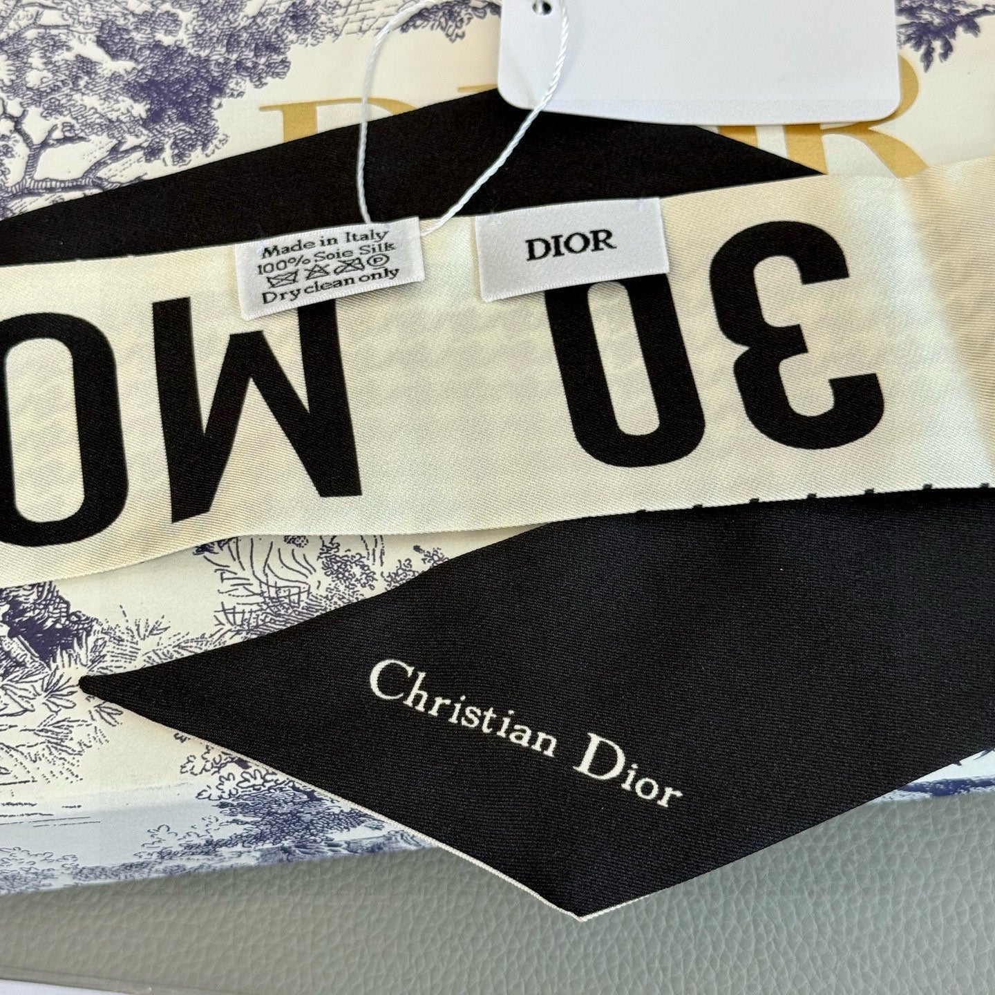 CD Twilly Mini Scarf 105cm Beige Black Mulberry Silk 909398