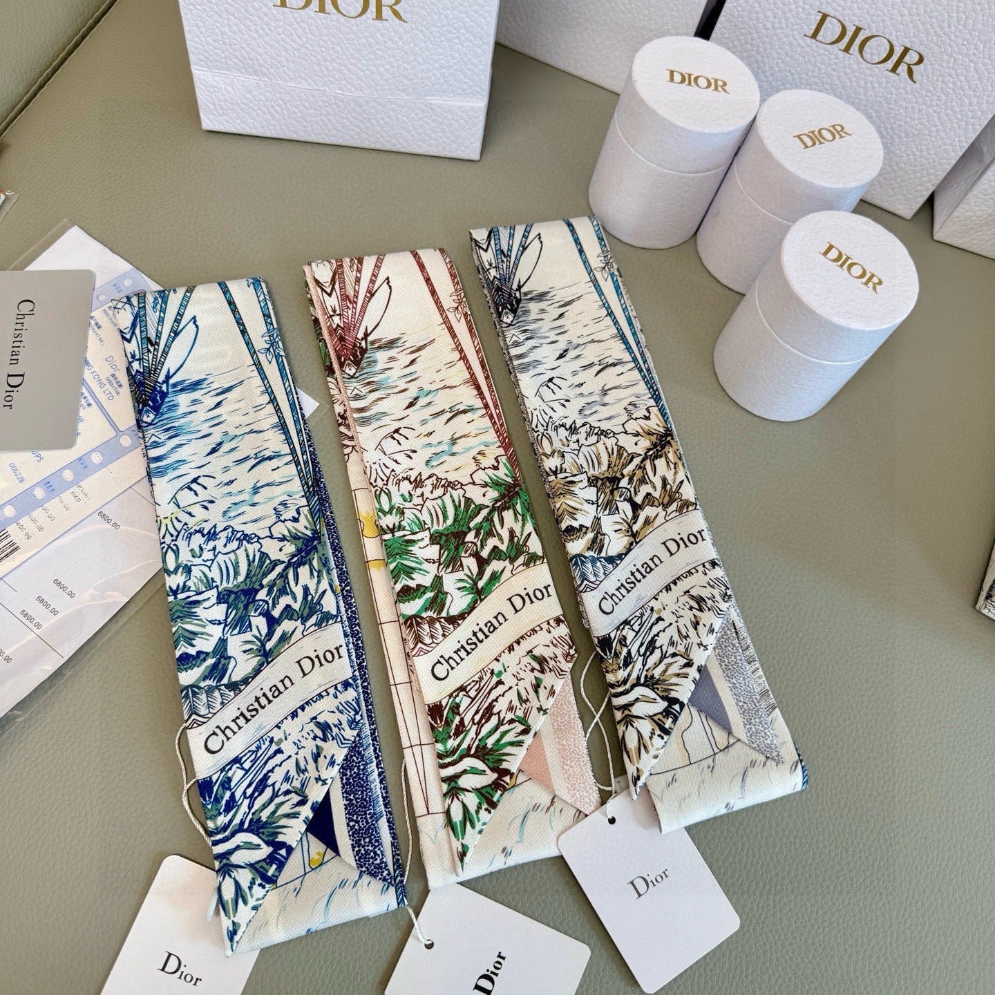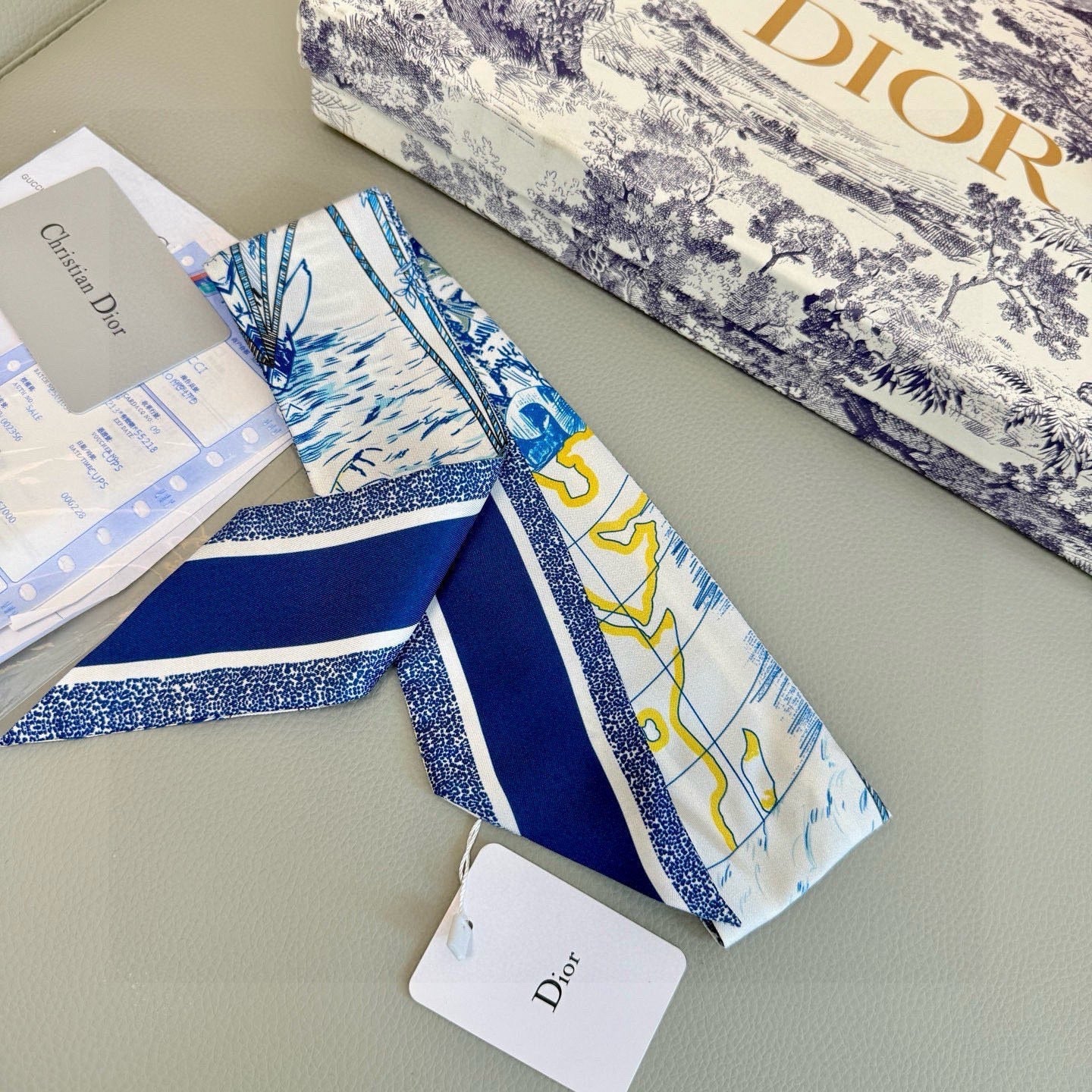 CD Twilly Mini Scarf 105cm Blue Colorful Mulberry Silk 945716