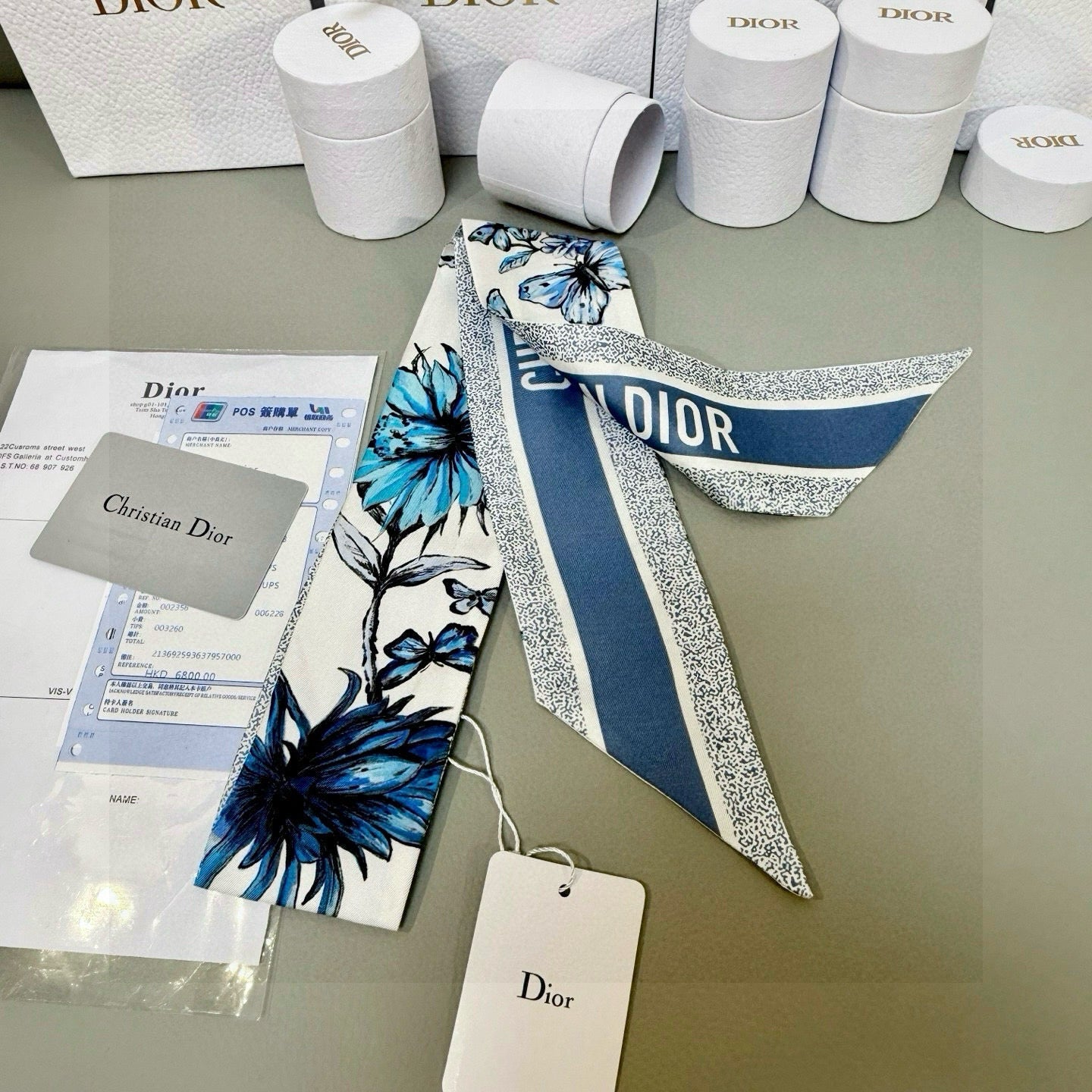 CD Twilly Mini Scarf 105cm Blue Mulberry Silk 935250