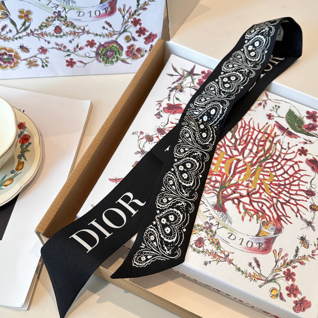 CD Twilly Mini Scarf 105cm Black White Mulberry Silk 968856