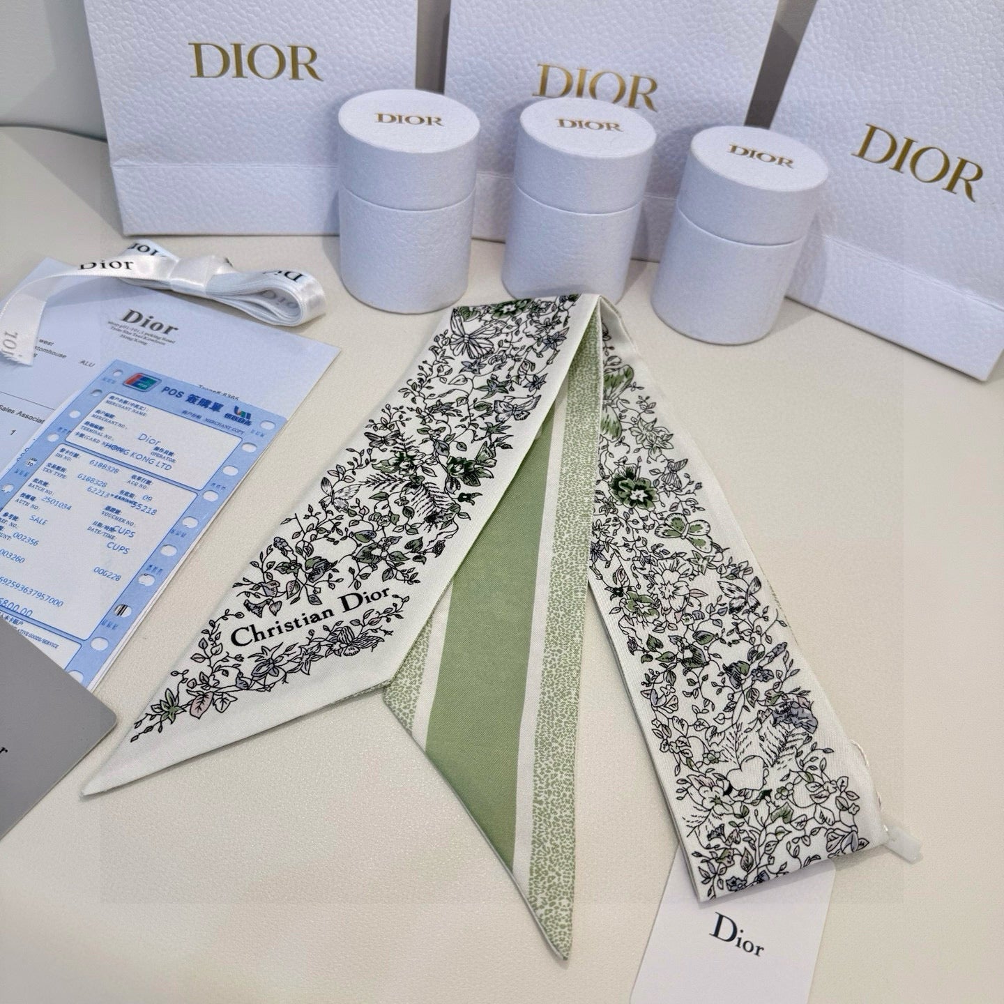 CD Twilly Mini Scarf 105cm Green Mulberry Silk 941923