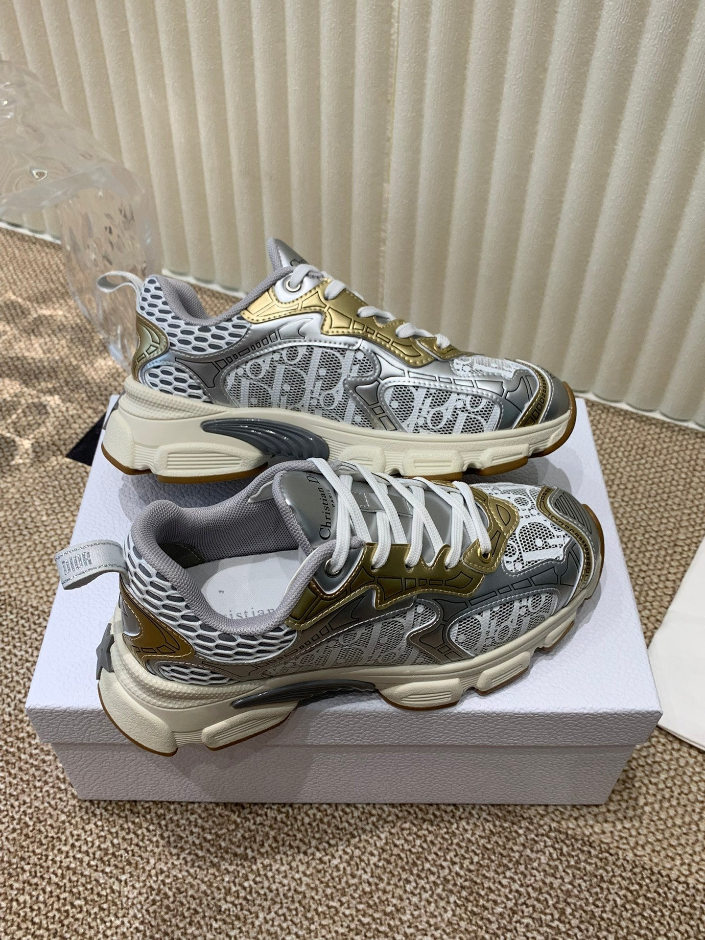 CD Vibe Sneaker In White Mix Dark Grey Gold Polyester Mesh Fabric And Cowhide 113418