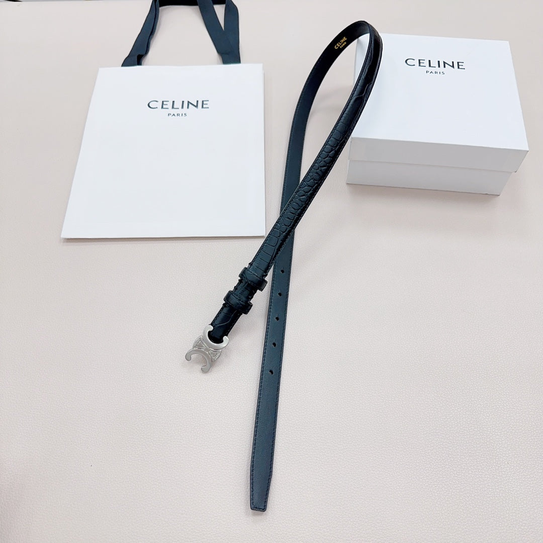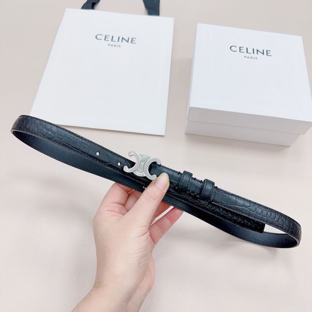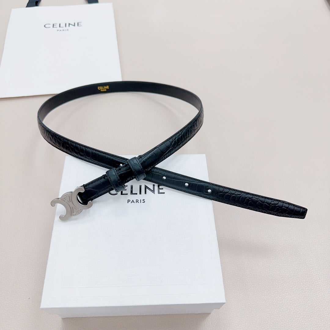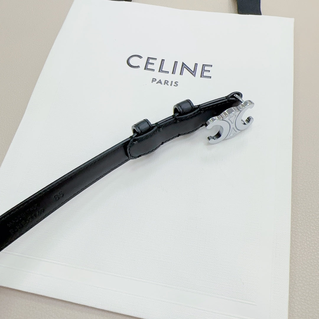 CEL Silver Buckle Belt 18mm Black Calfskin 176703