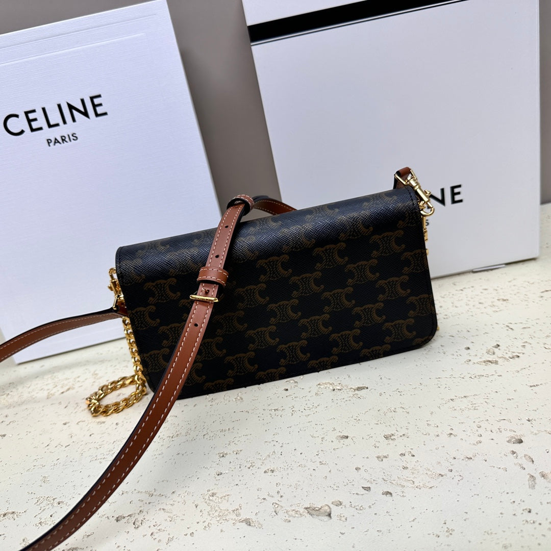 FLAP WITH DECORATIVE TRIOMPHE AND SNAP BUTTON CLOSURE